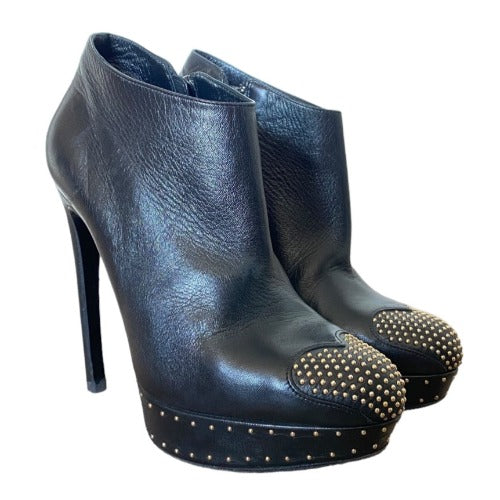 ALEXANDER MCQUEEN Black Leather Studded Heart-Toe Platform Bootie, Size 39