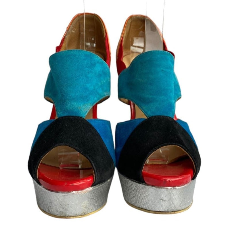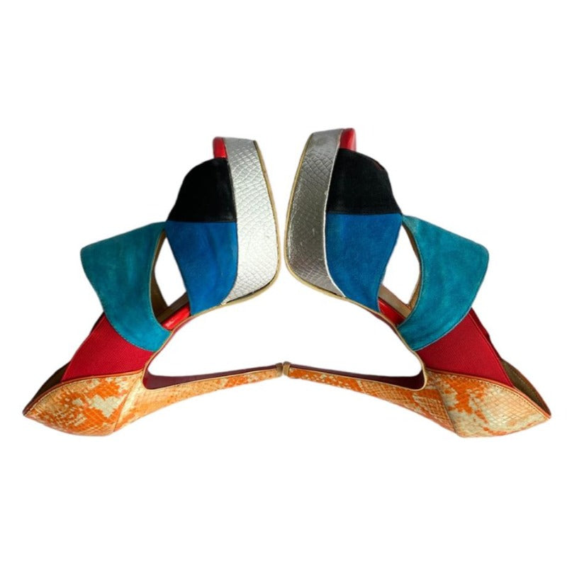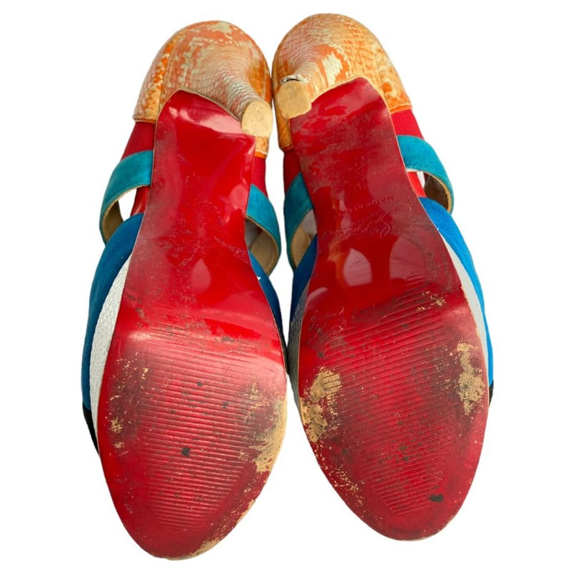 $1411 CHRISTIAN LOUBOUTIN Pitou 150 Veau Velours / Python Fresh Pumps, Size 38