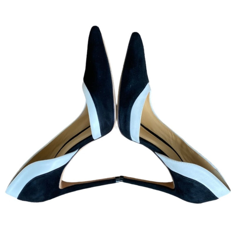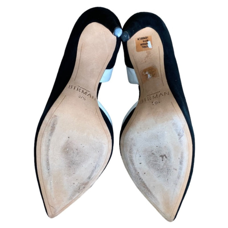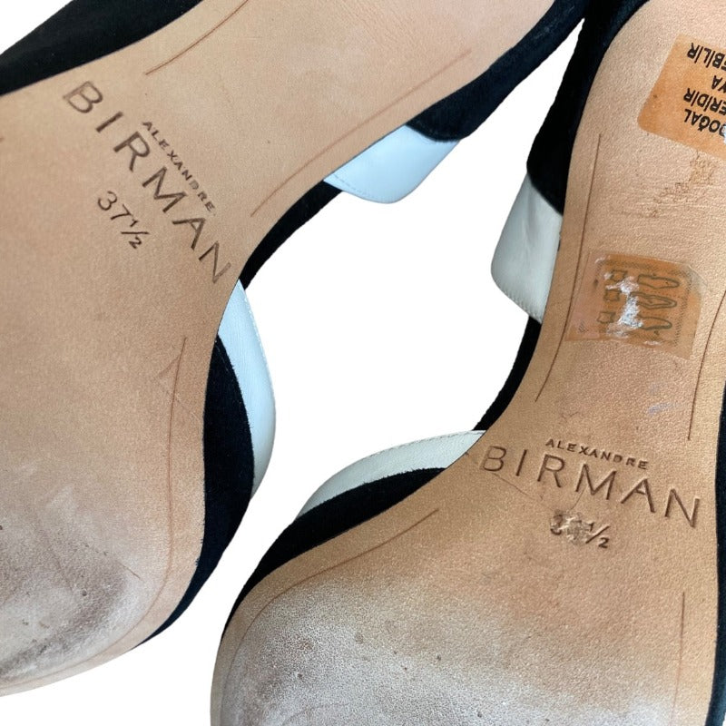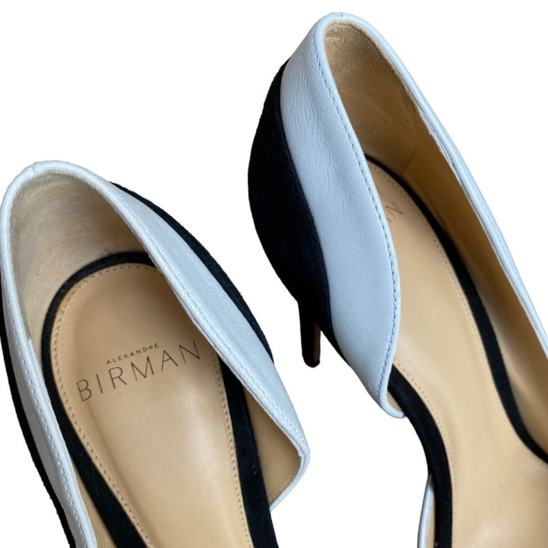 ALEXANDRE BIRMAN Black Suede White Leather Pointed Toe Stiletto Pumps, Size 37.5