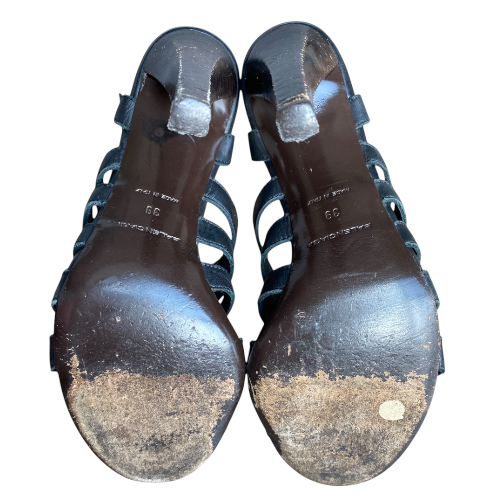 BALENCIAGA Black Leather Strappy Gladiator Heeled Sandals, Size 39
