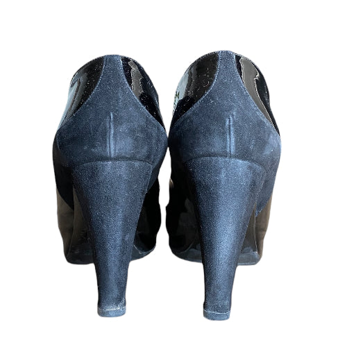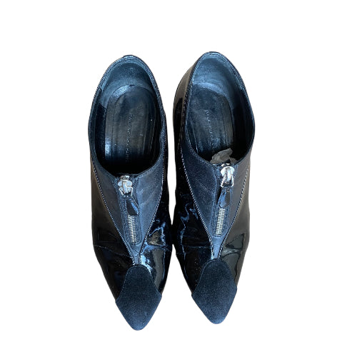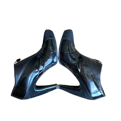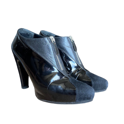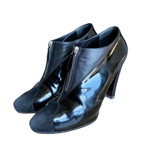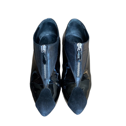 BALENCIAGA Lucy Black Patent Leather, Leather & Suede Front Zip Boots, Size 39.5