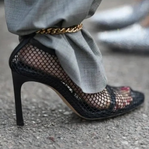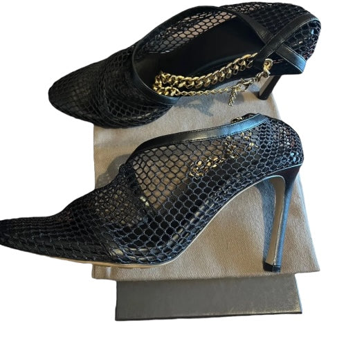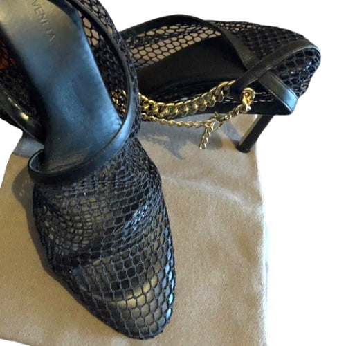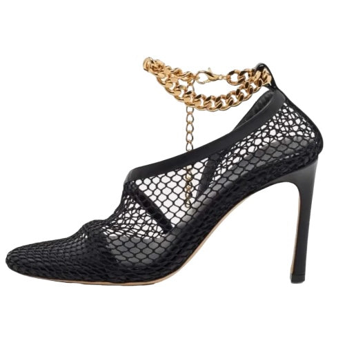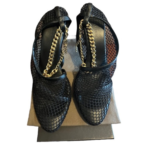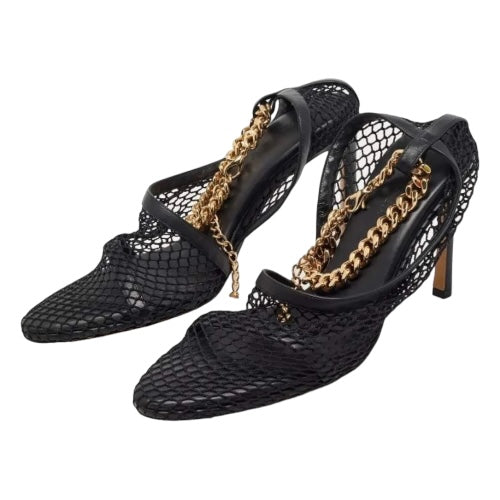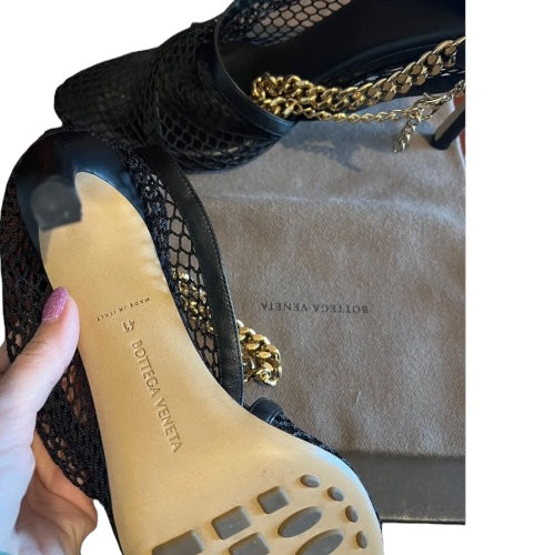 BOTTEGA VENETA Black Mesh & Leather Trims Chain Ankle Strap Cuff Pumps, Size 41