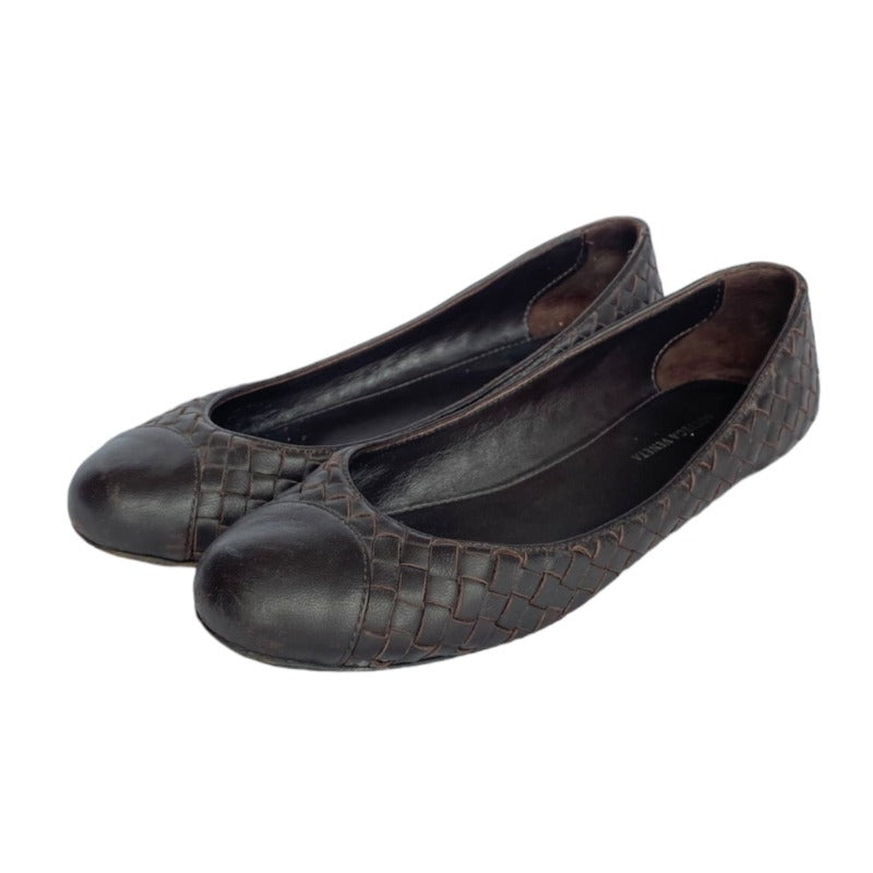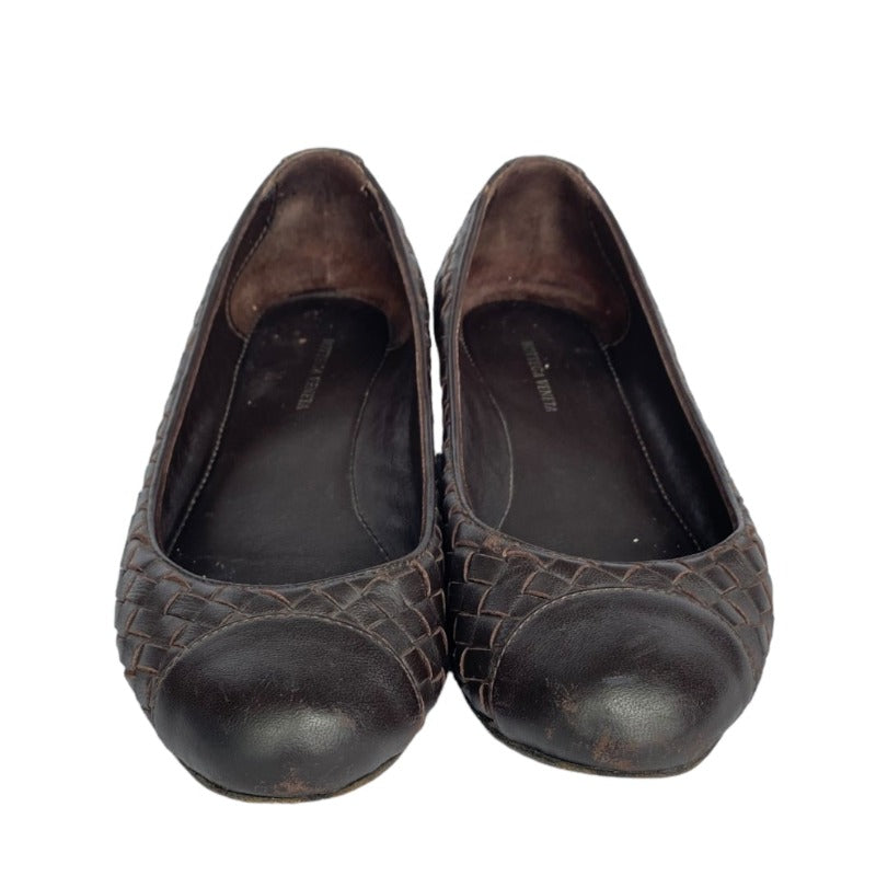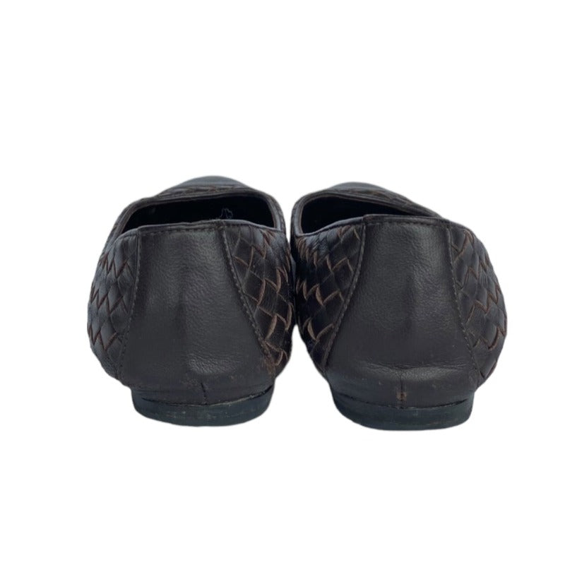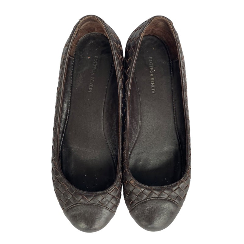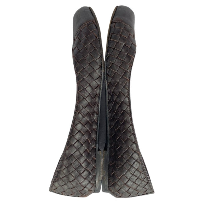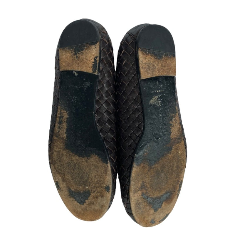 BOTTEGA VENETA Dark Brown Intrecciato Leather Ballet Flats, Size 37