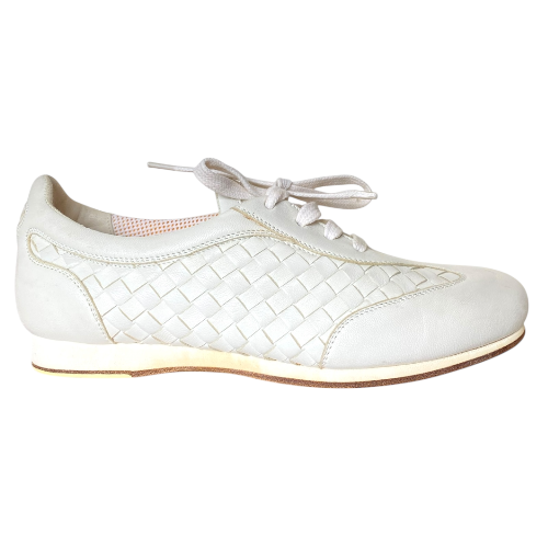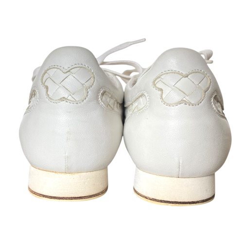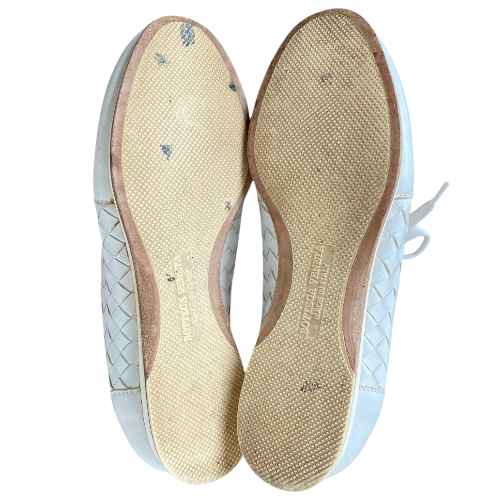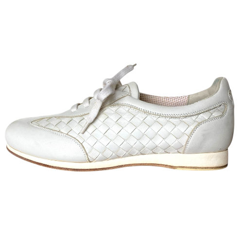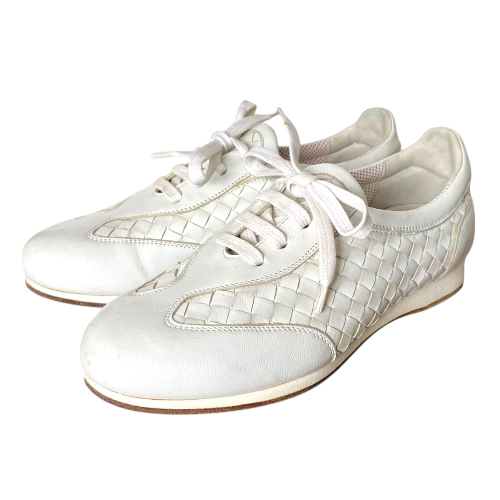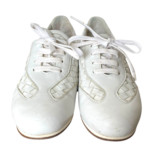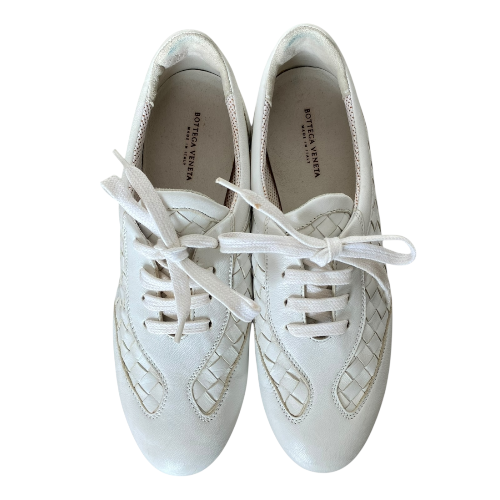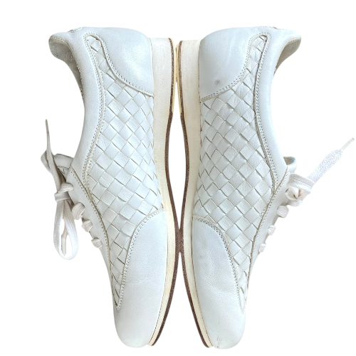 BOTTEGA VENETA White Leather Intrecciato Lace Up Low Top Sneakers, Size 36