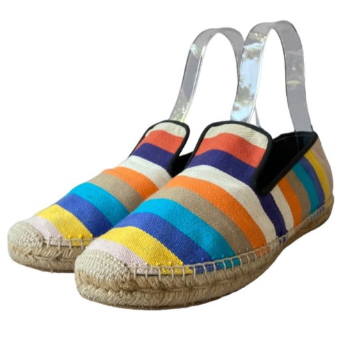 CELINE Phoebe Philo Multicolor Striped Canvas Espadrille Flats, Size 40