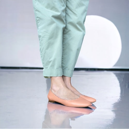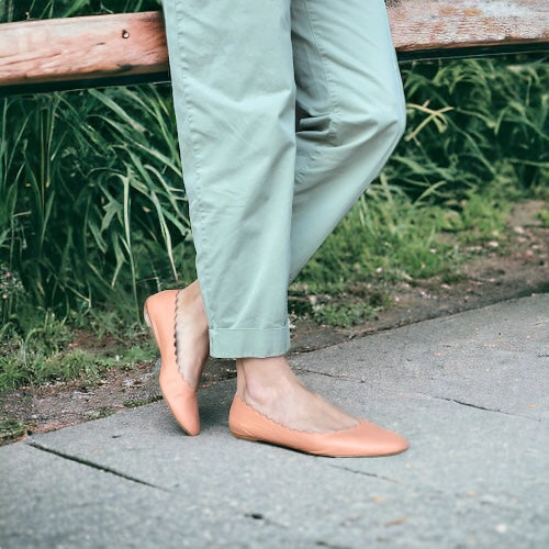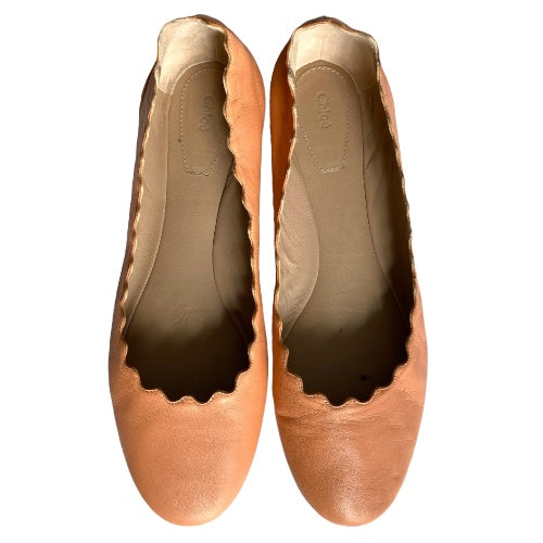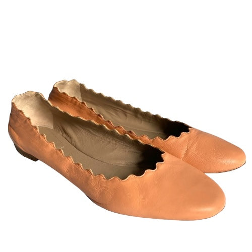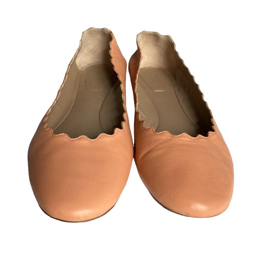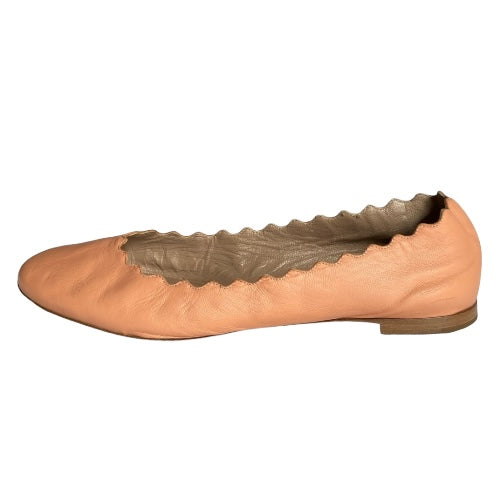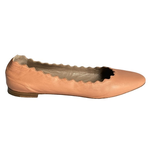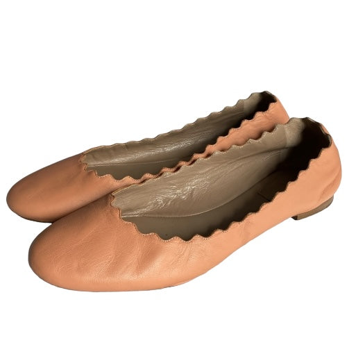 CHLOE Lauren Dusty Pink Scalloped Leather Ballet Flats, Size 38.5