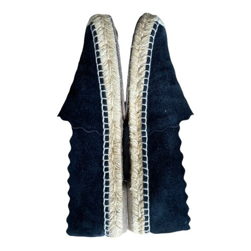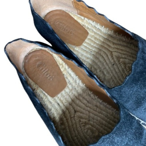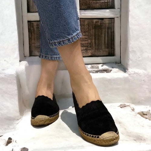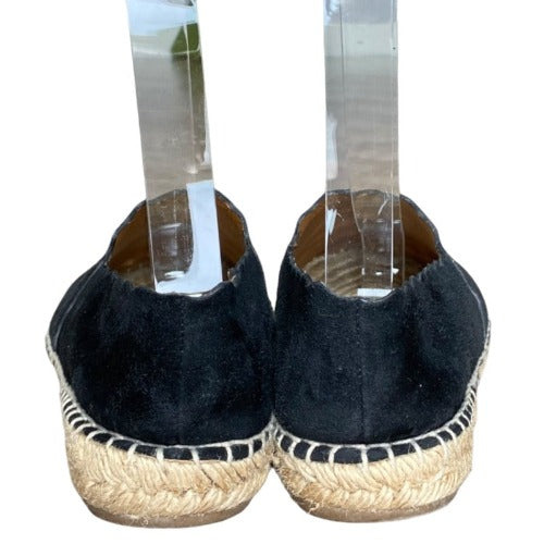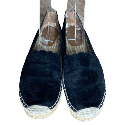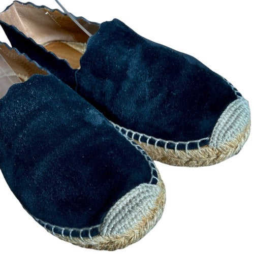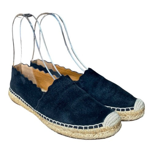 CHLOE Lauren Scalloped Espadrille Black Leather Suede Flat Women Shoes, Size 37
