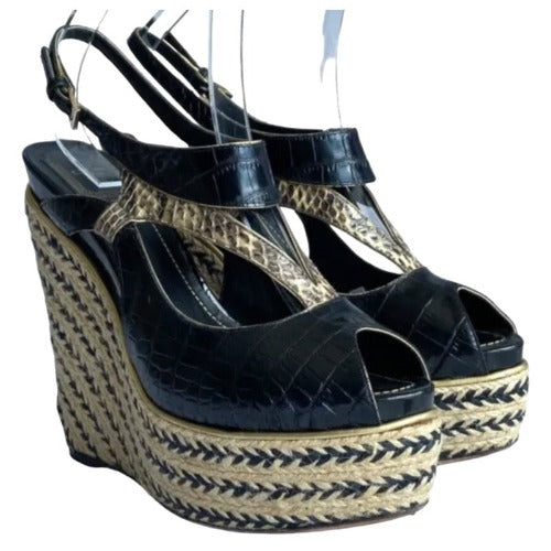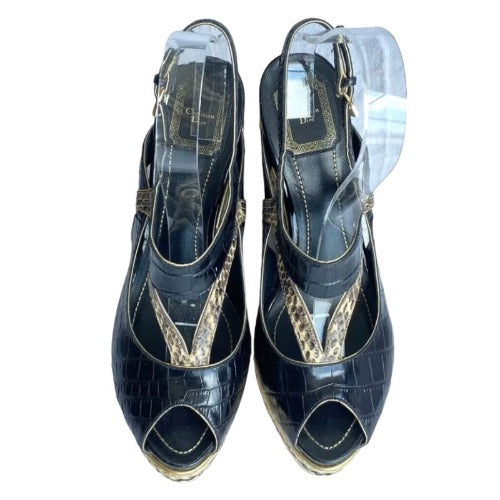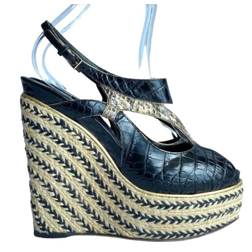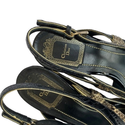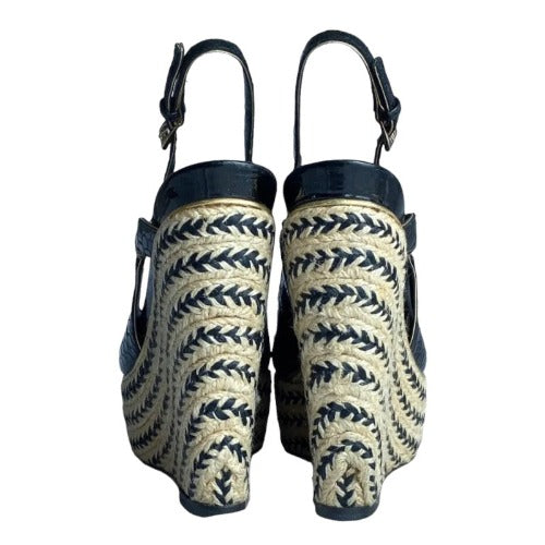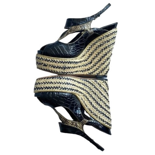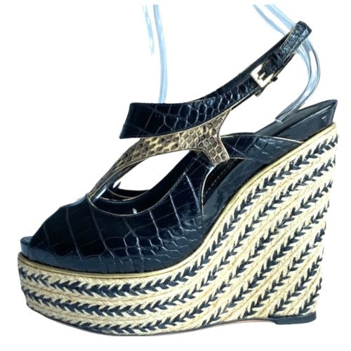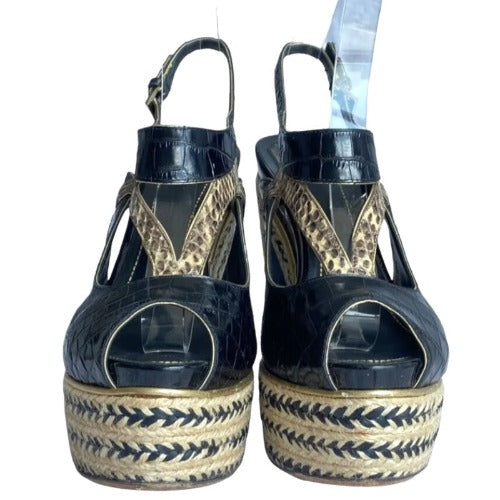 CHRISTIAN DIOR Black Beige Python Wedge Espadrille Sandals, Size 40
