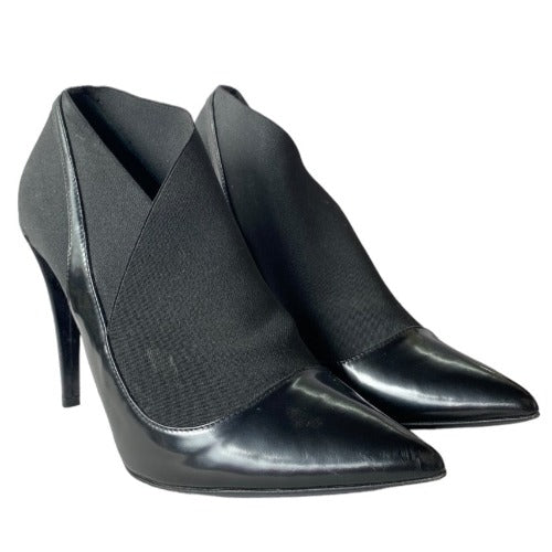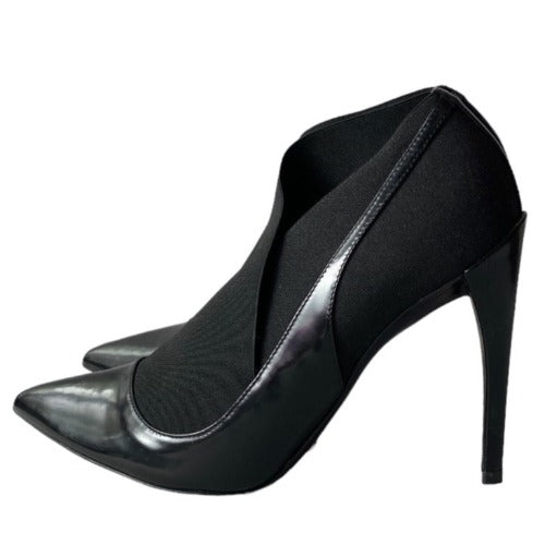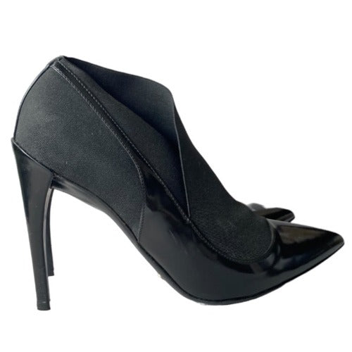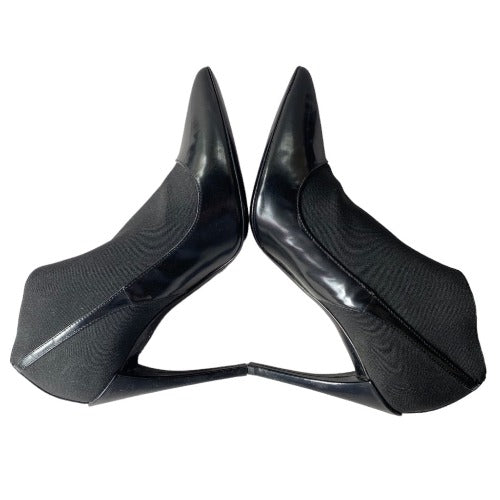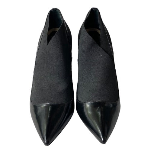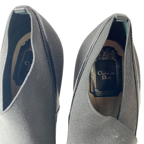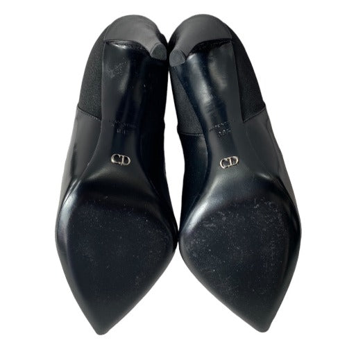 CHRISTIAN DIOR Black Leather Fabric Stretch Pointed Toe Booties, Size 38.5