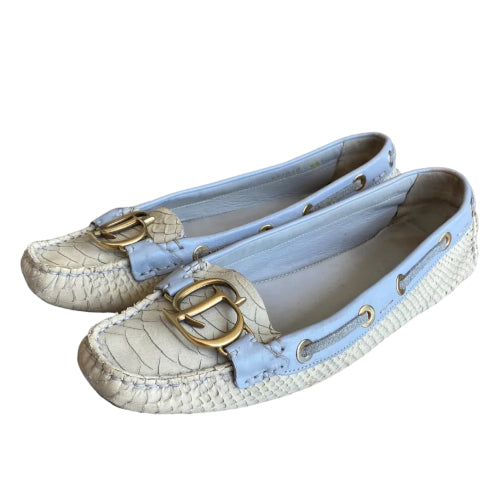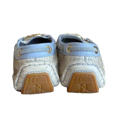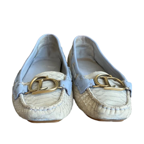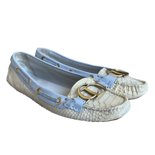 CHRISTIAN DIOR Cream & Purple Python Leather CD Logo Loafers, Size 40