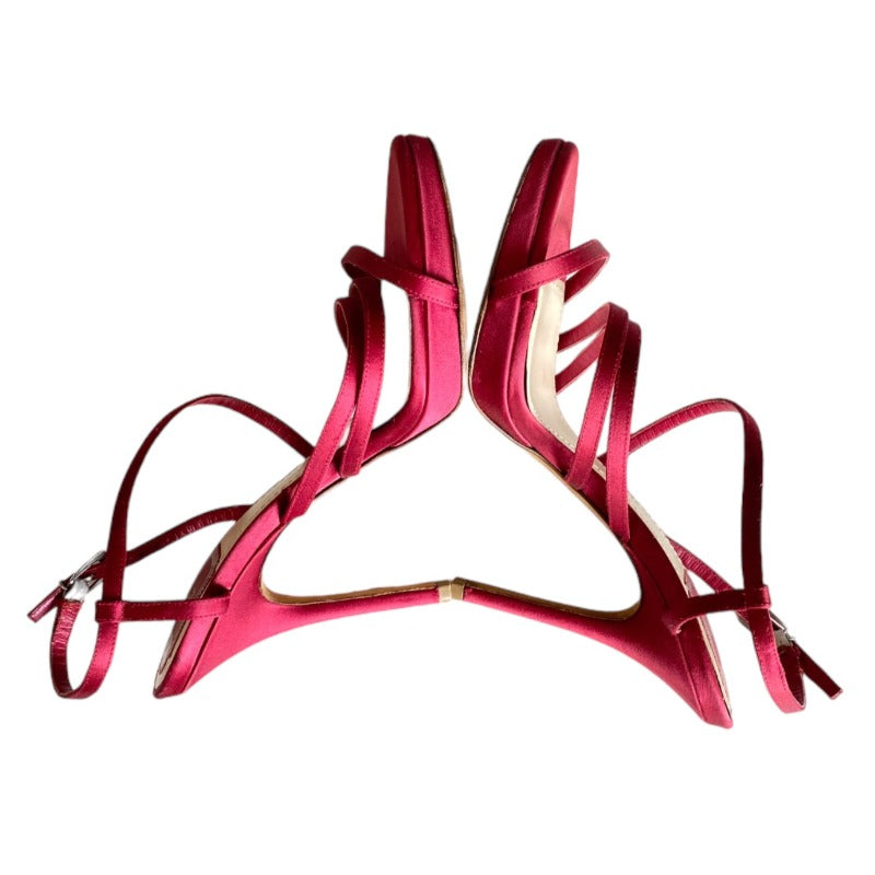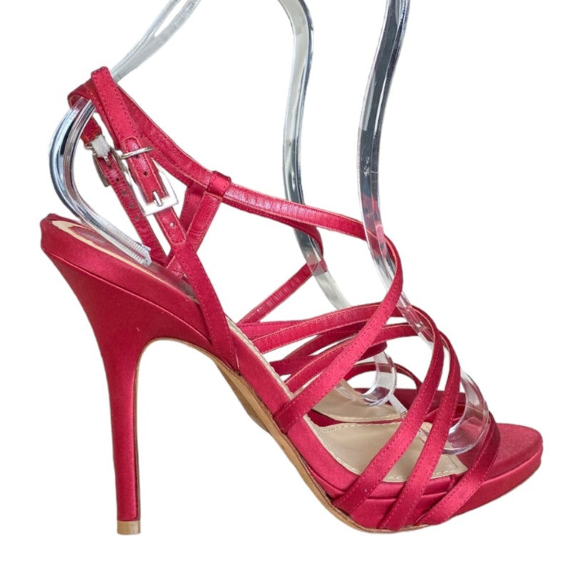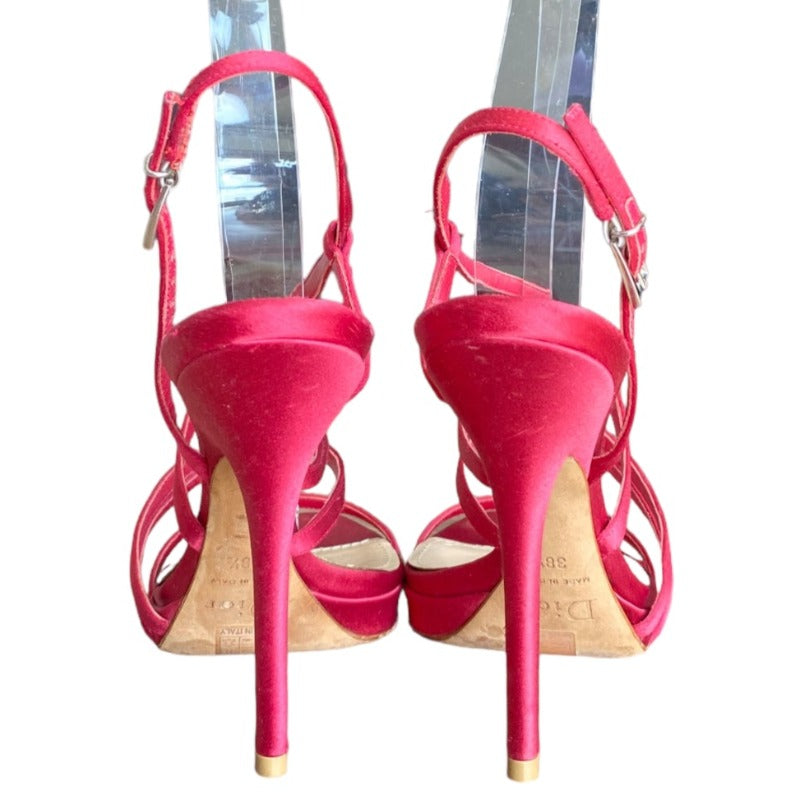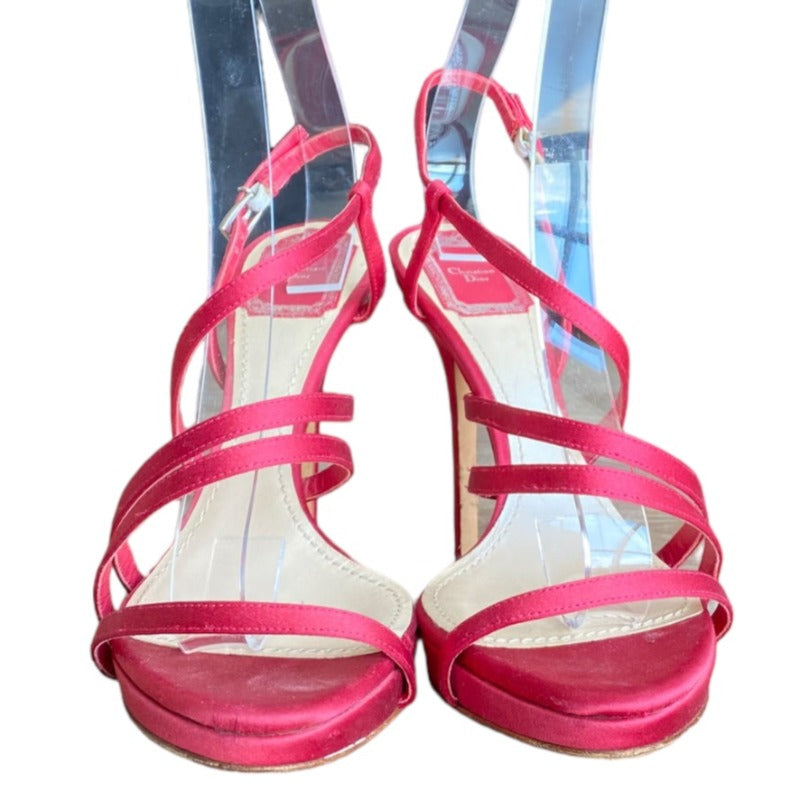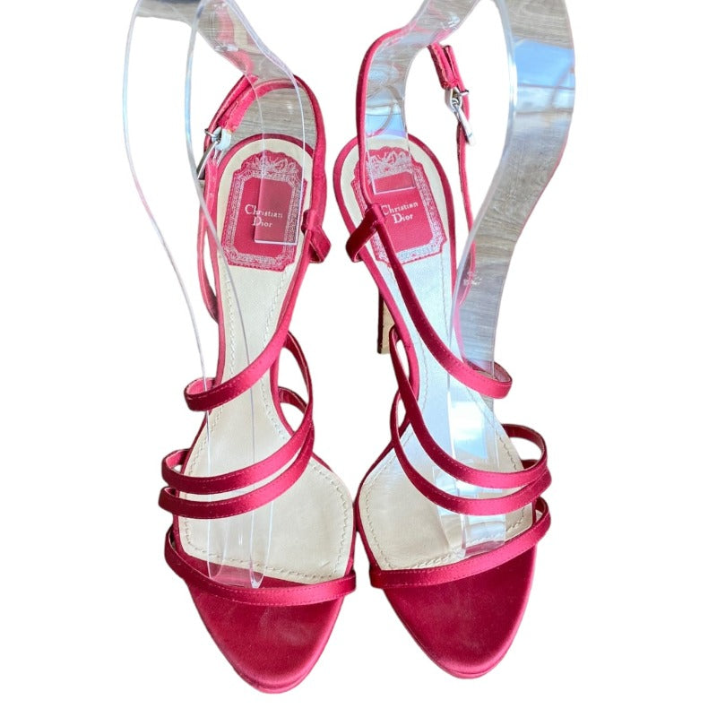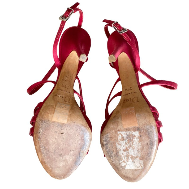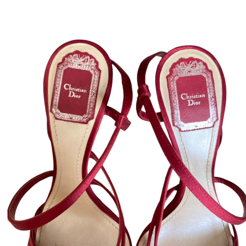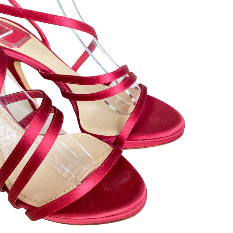 CHRISTIAN DIOR Red Satin Strappy Slingback Stiletto Heeled Sandals, Size 38.5