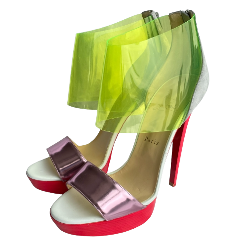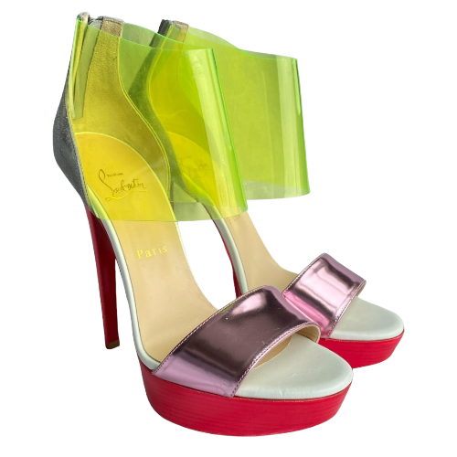 CHRISTIAN LOUBOUTIN Multicolor Leather and PVC Dufoura Platform Sandals, 39.5