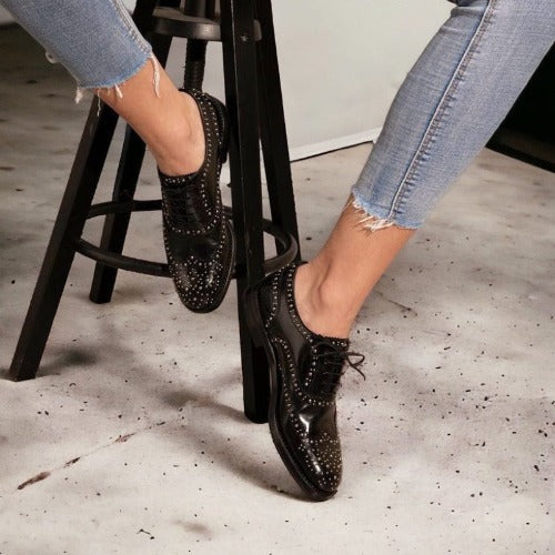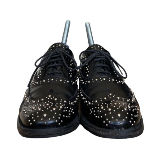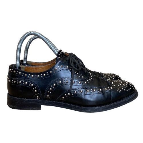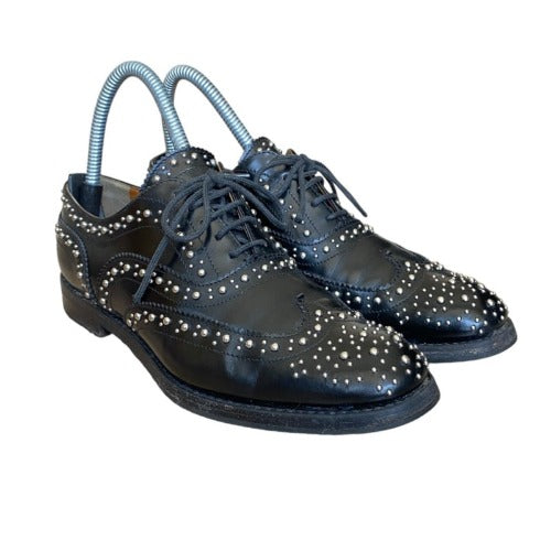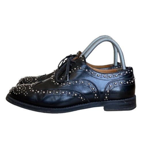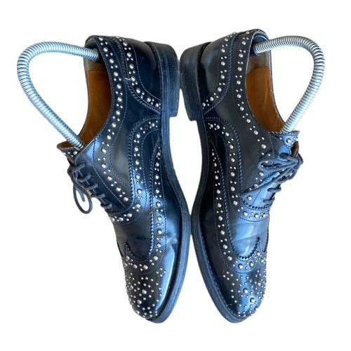 CHURCH’S Burwood Met. Polished Binder Brogue Studded Black Oxford, Size 37.5