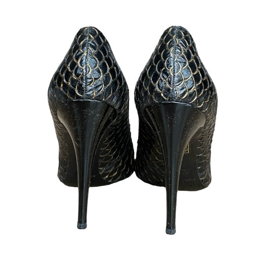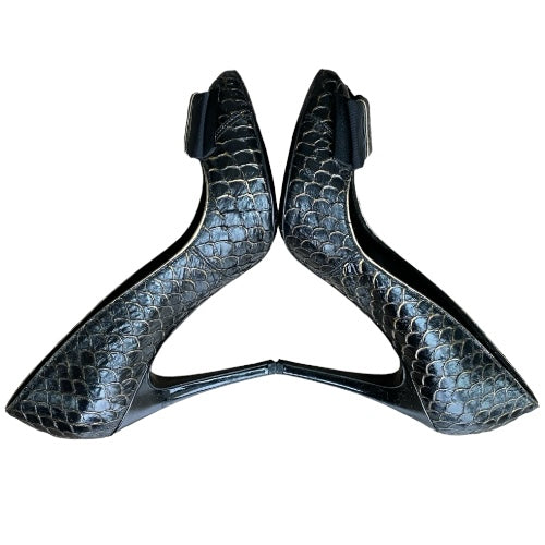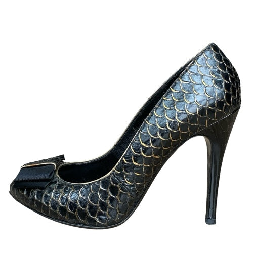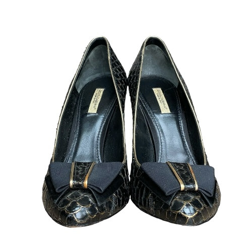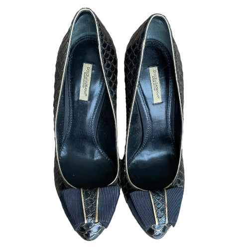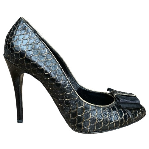 DOLCE & GABBANA Black Python Leather Bow Detail Pumps, Size 38.5