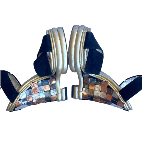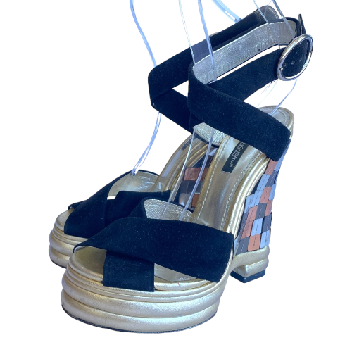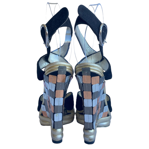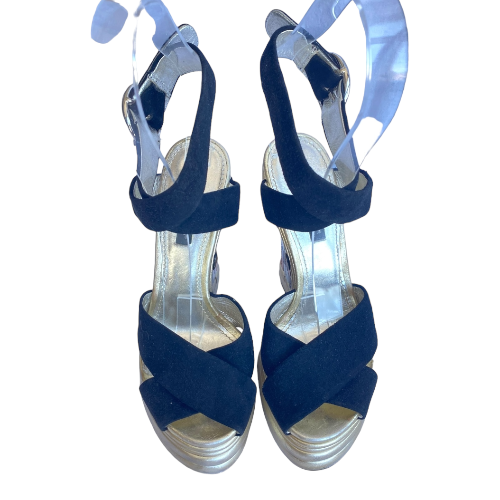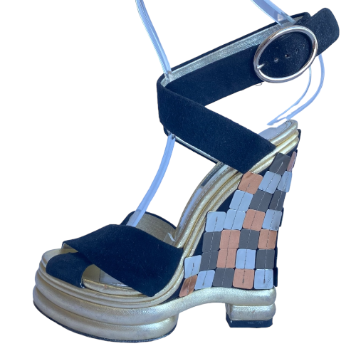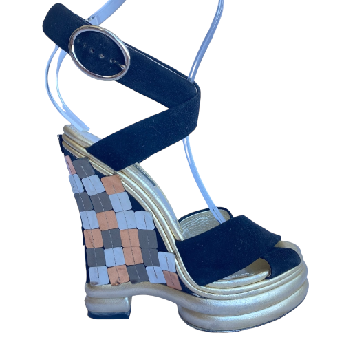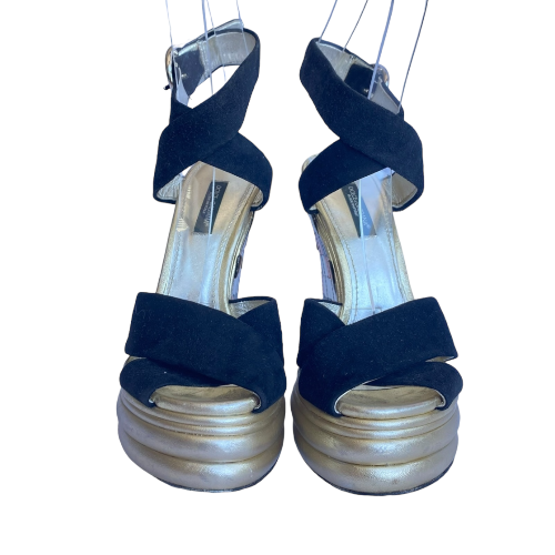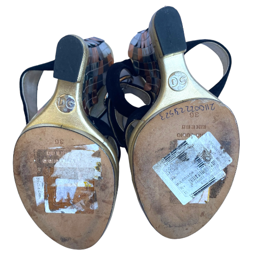 DOLCE & GABBANA Black Suede Criscross Leather Heel Wedge Sandals, Size 36