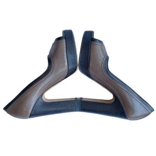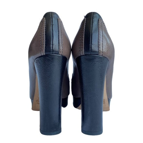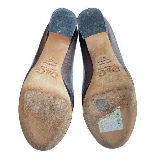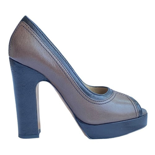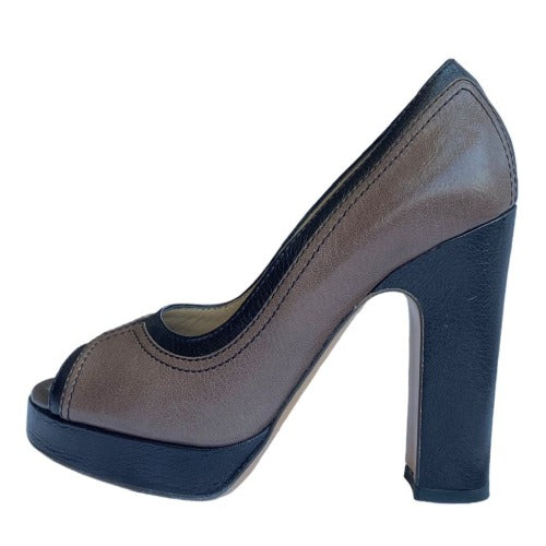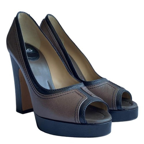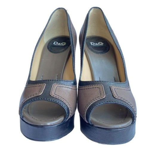 DOLCE & GABBANA Brown & Black Leather Peep Toe Platform Pumps, Size 38.5