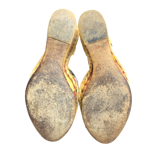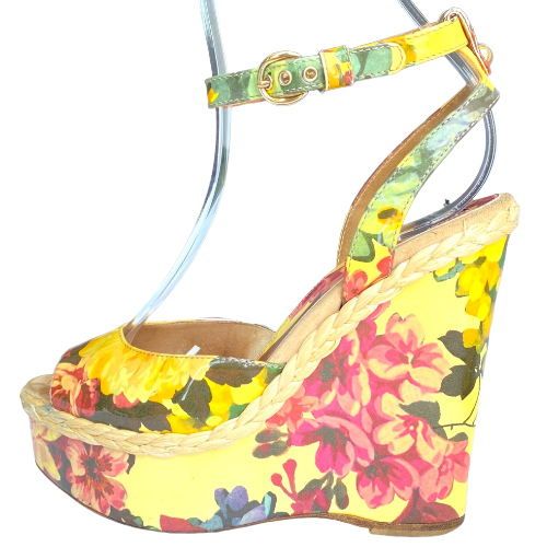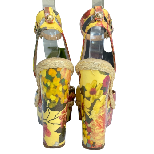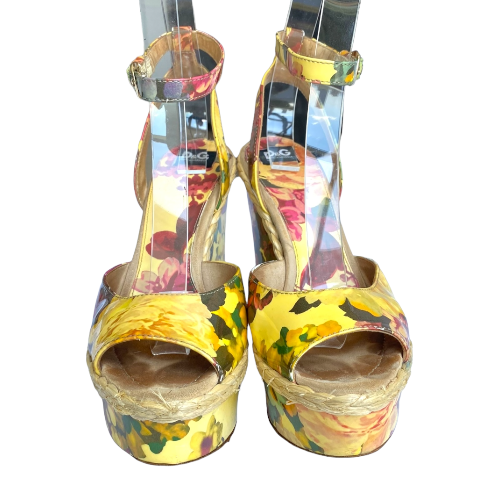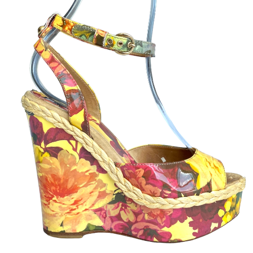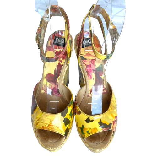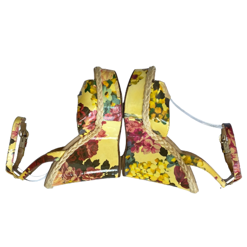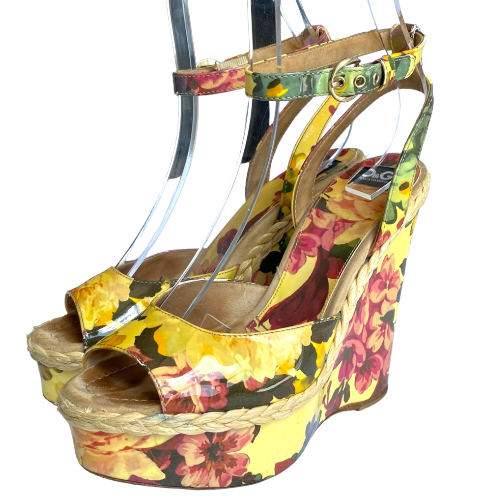 DOLCE & GABBANA Multicolor Patent Leather Floral Print Wedge Sandals, Size 38