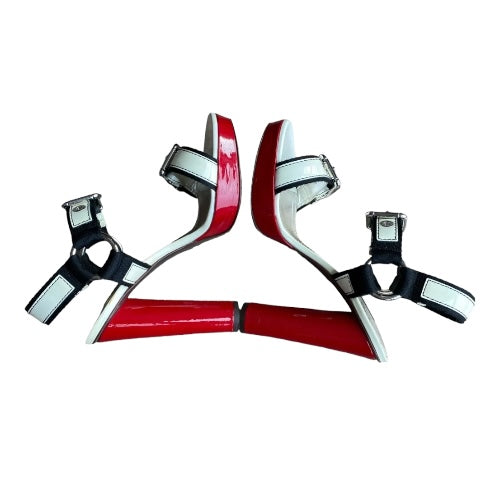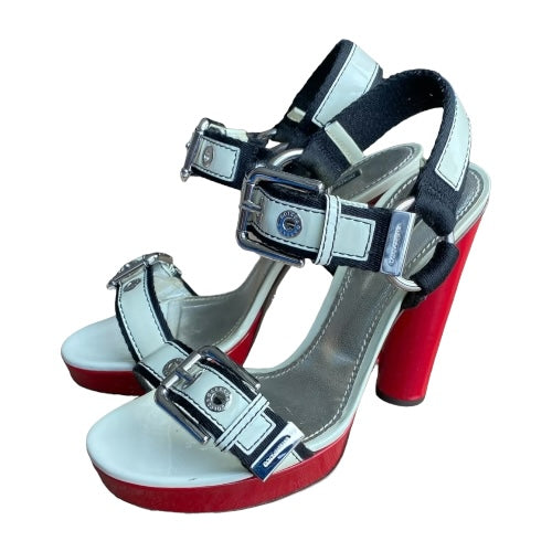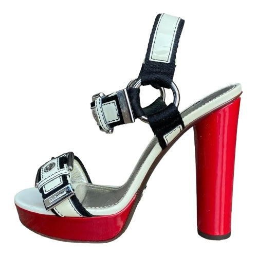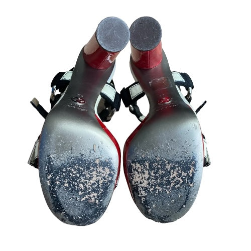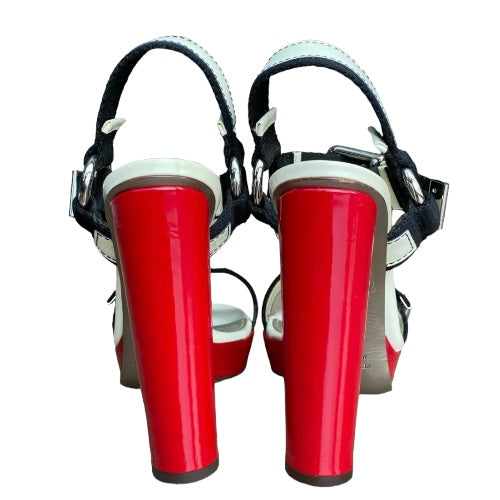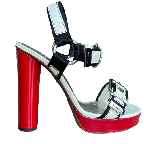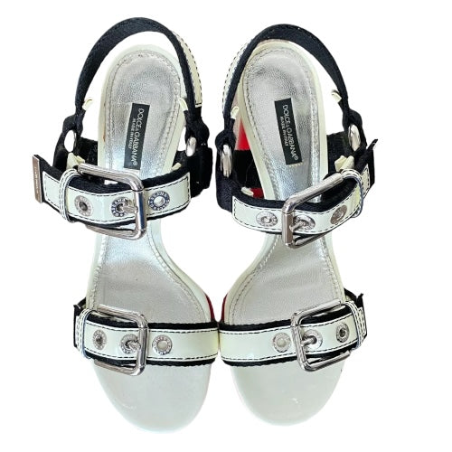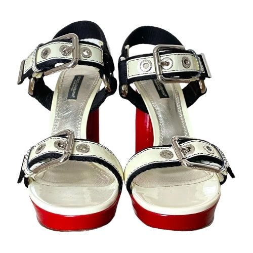 DOLCE & GABBANA Off White & Black & Red Patent Leather Strappy Sandals, Size 39