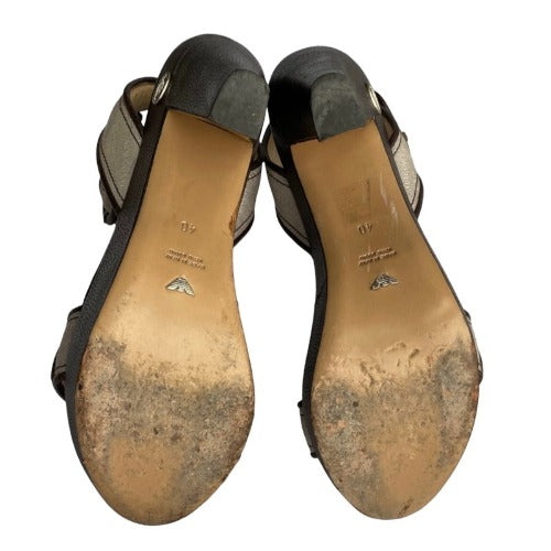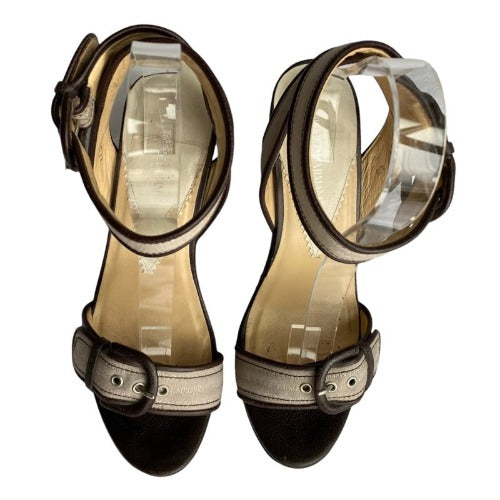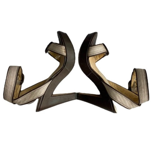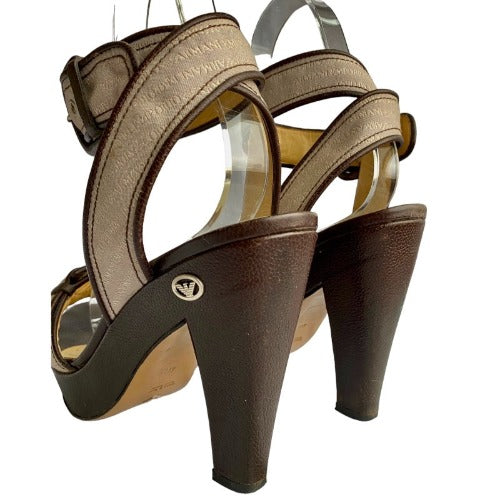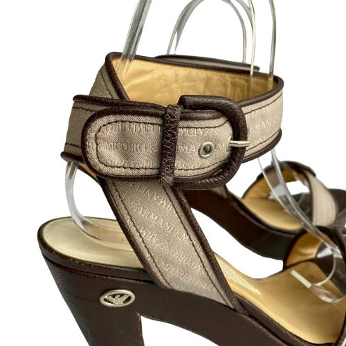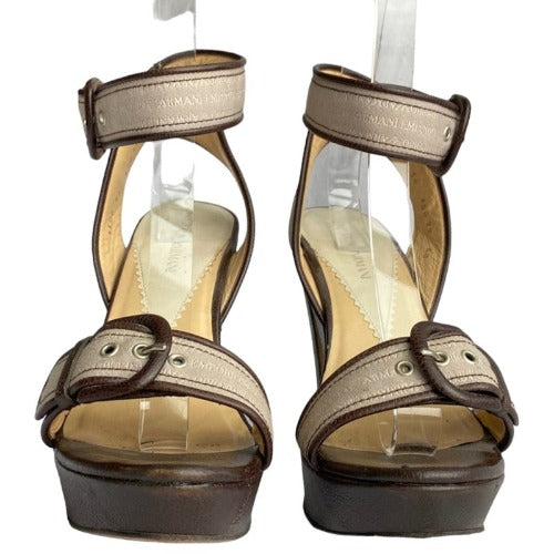 EMPORIO ARMANI Monogram Nude Strapped Brown Leather Sole Platform Sandals, Size 40