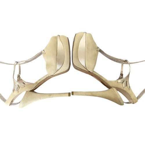 FENDI Beige Suede T Bar Ankle Strap Platform Sandals, Size 38
