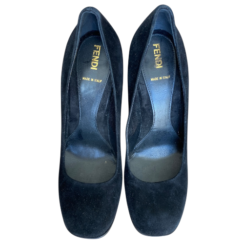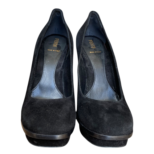 FENDI Black Suede Platform Pumps, Size 39