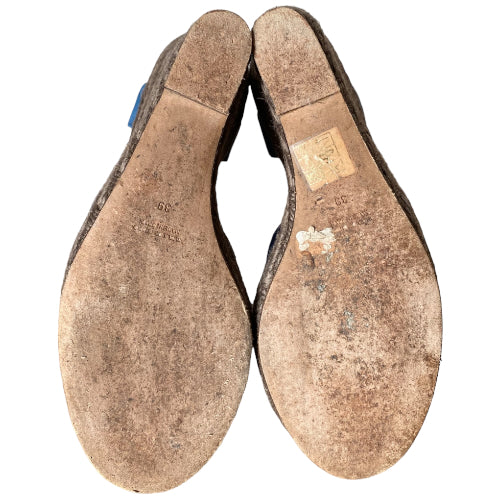 FENDI Blue Mesh Fabric & Suede Wedge Espadrille Ankle Strap Sandals, 39