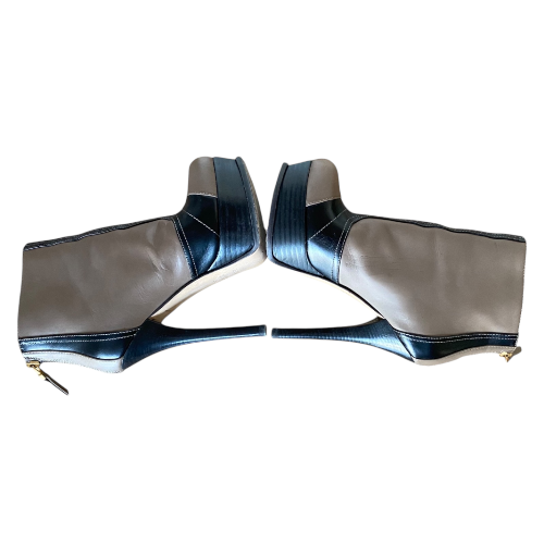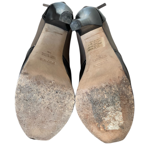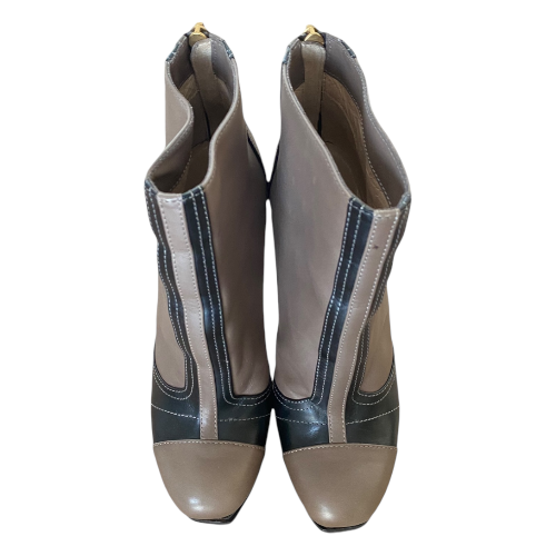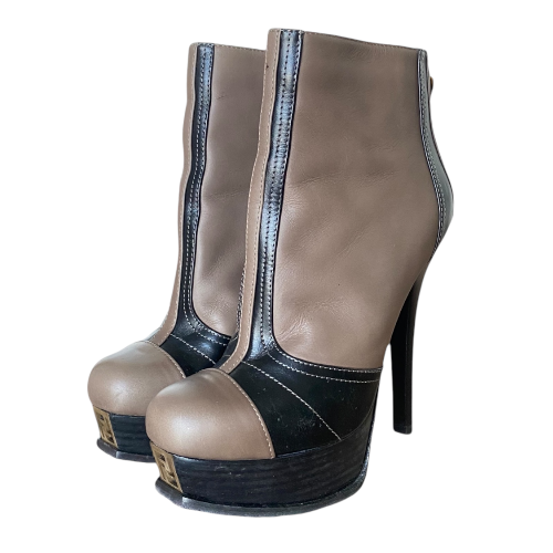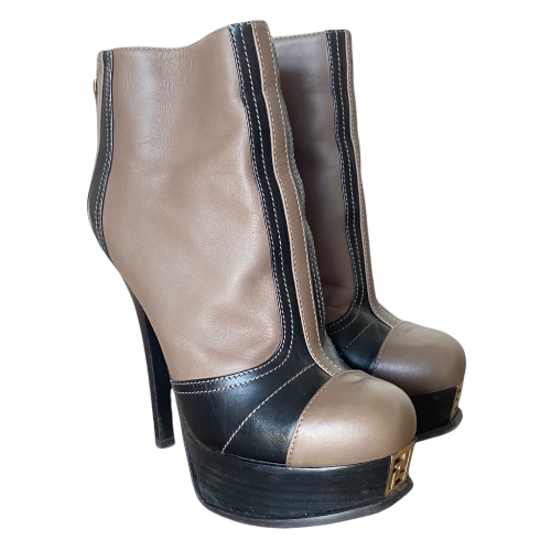 FENDI Fendista Taupe & Black Leather Platform Ankle Boots, Size 36
