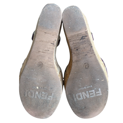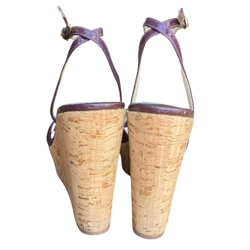 FENDI Purple Patent Leather Ankle Strap Cork Wedge Sandals, Size 38
