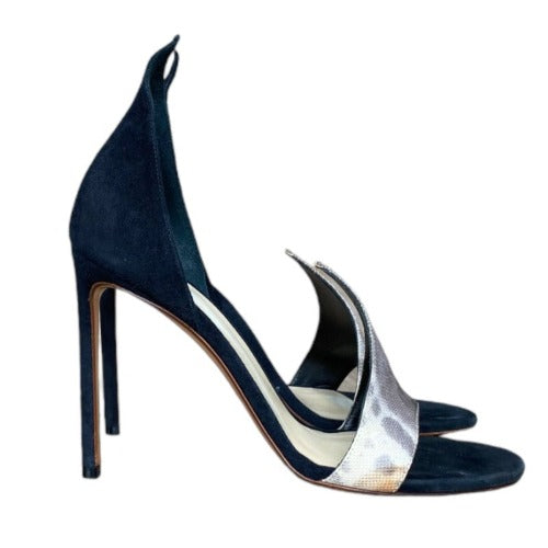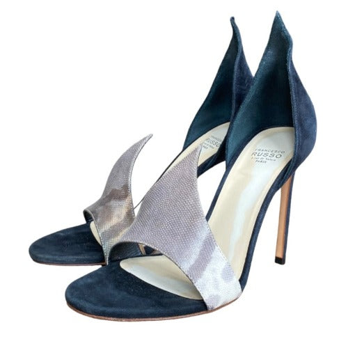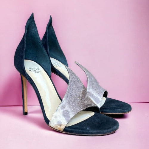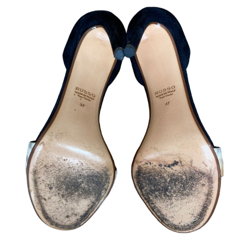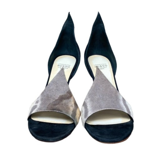 FRANCESCO RUSSO Riso 87 Black Suede Greige Nubuck D’Orsay Open Toe Sandals, 37