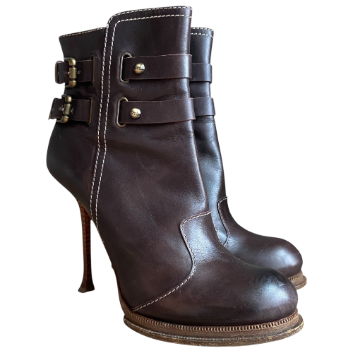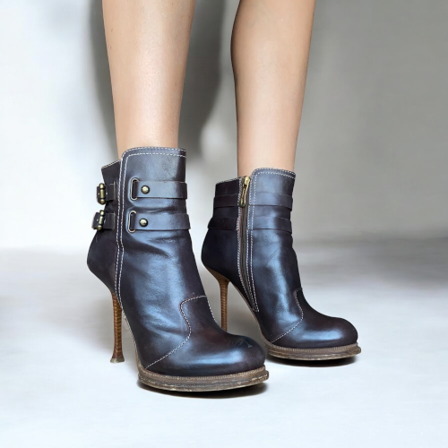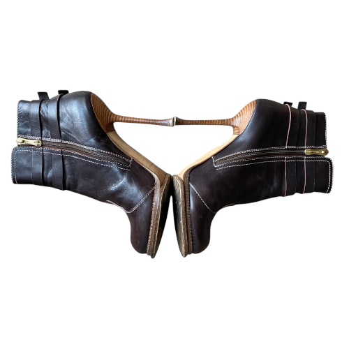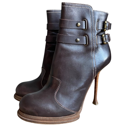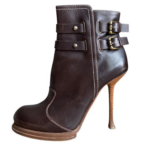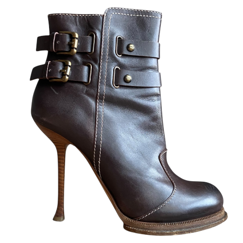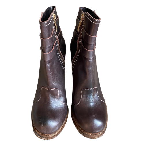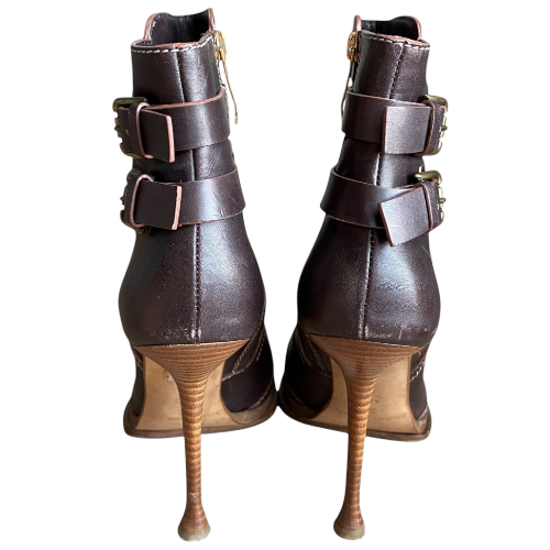 GIANMARCO LORENZI Brown Leather Buckle Detail Ankle Boots, Size 39