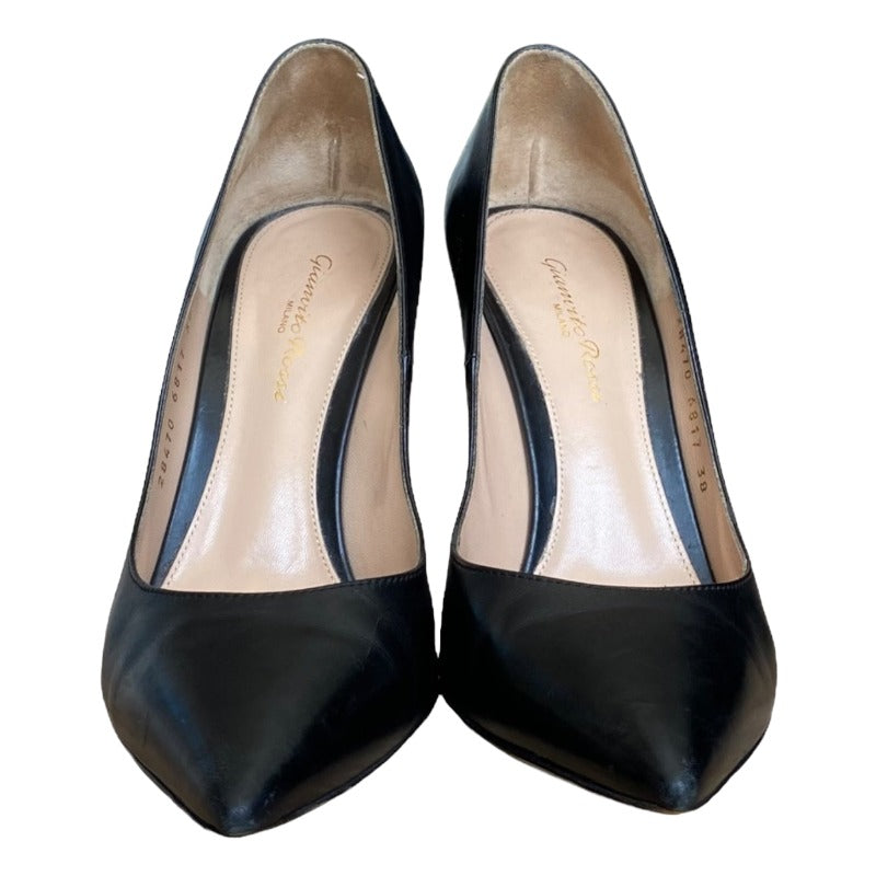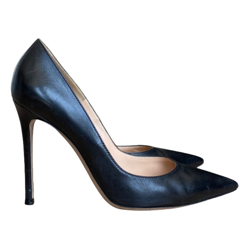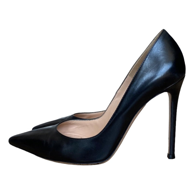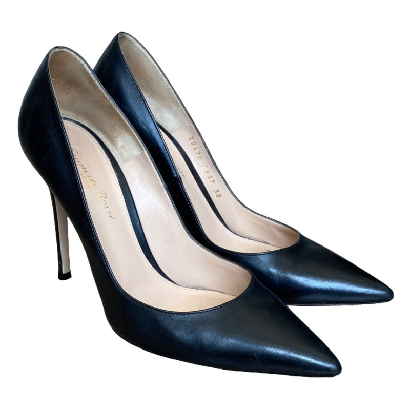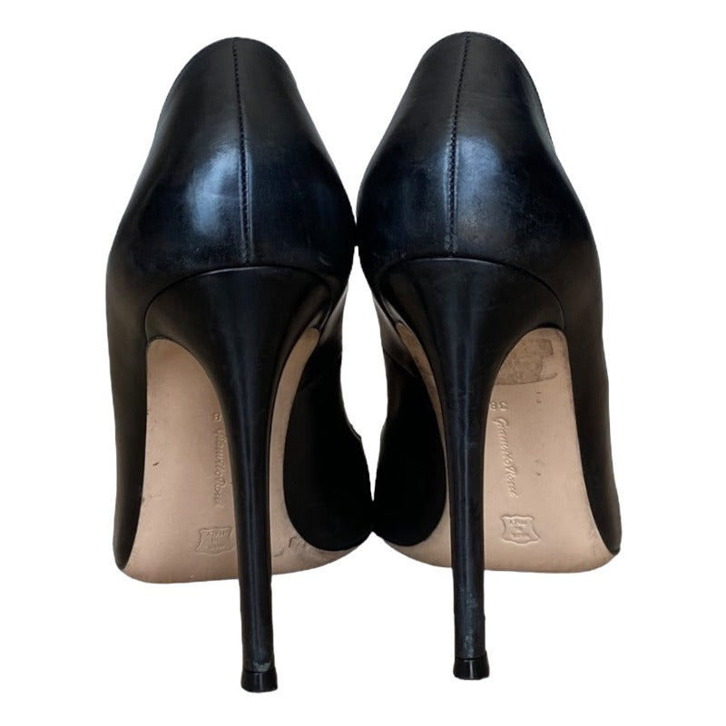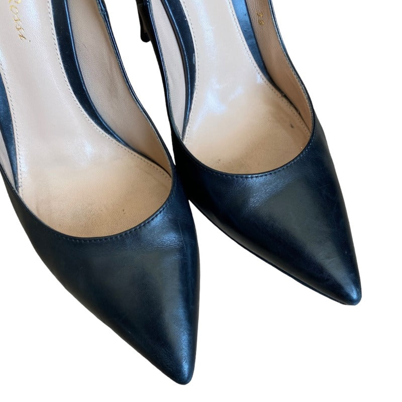 GIANVITO ROSSI Black Leather Tassel Stiletto Heel Pointed Toe Pumps, Size 38