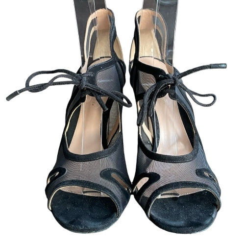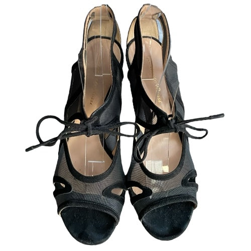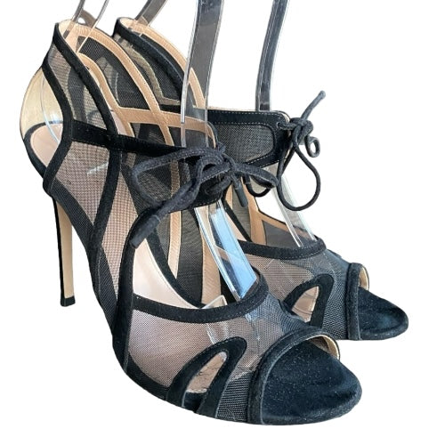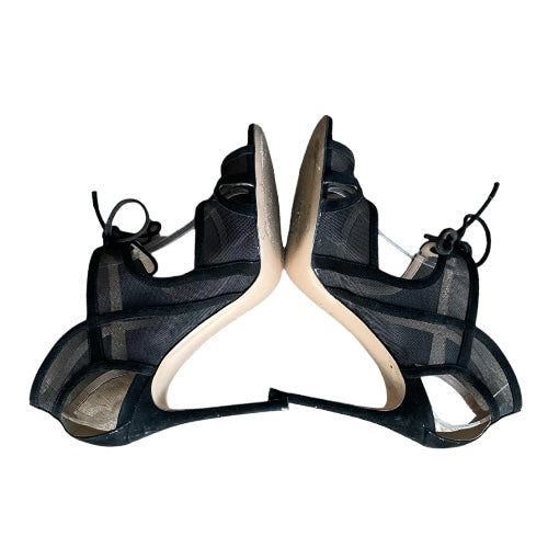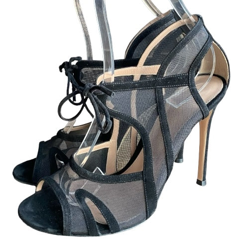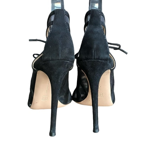 GIANVITO ROSSI Black Mesh & Suede Caged Open Toe Pumps, Size 39