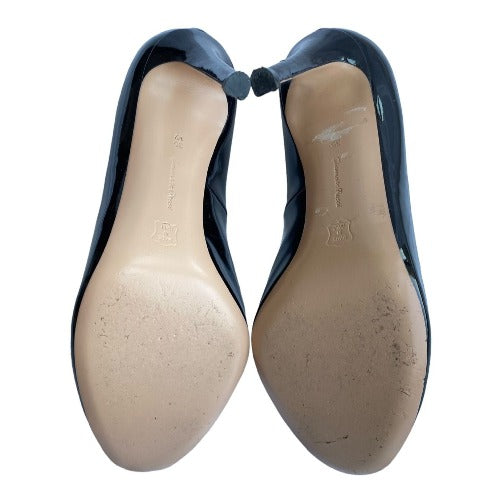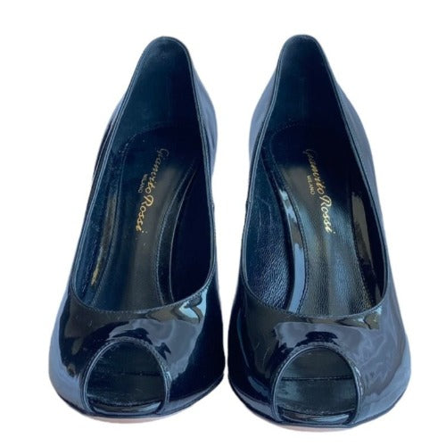 GIANVITO ROSSI Black Patent Leather Peep Toe Pumps, Size 35