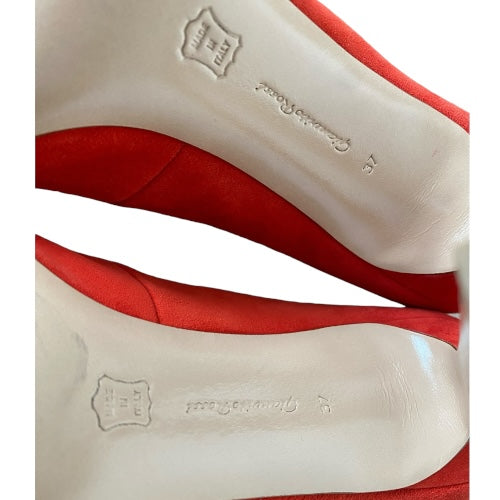 GIANVITO ROSSI Red Suede Vamp Peep Toe Booties, Size 37