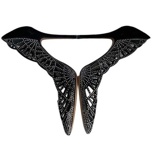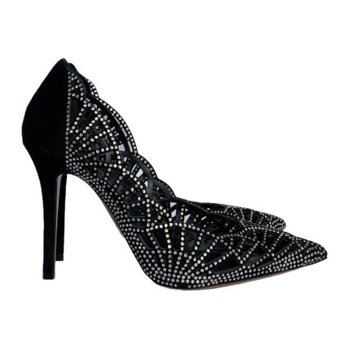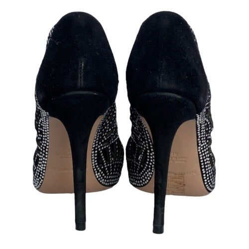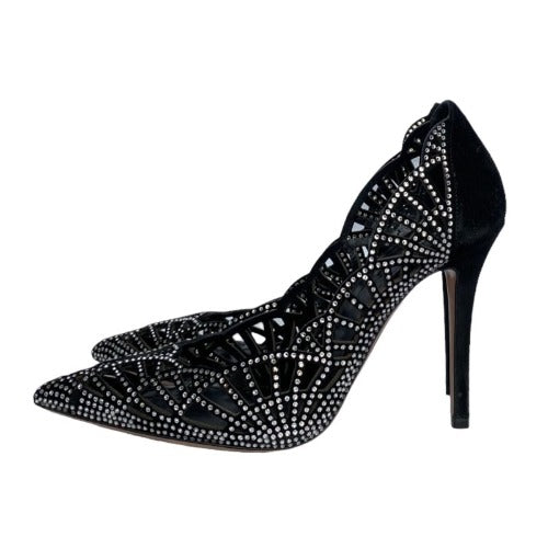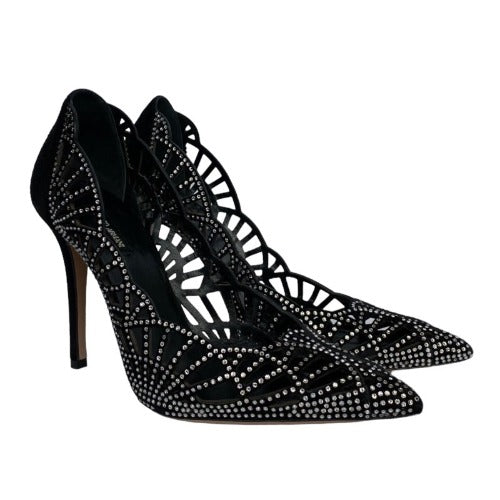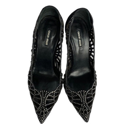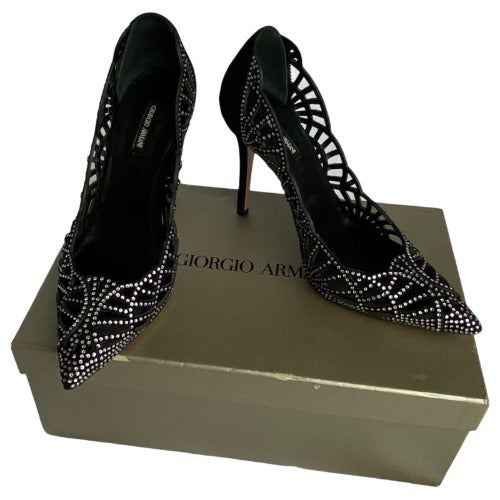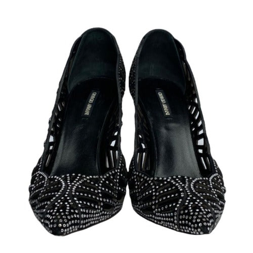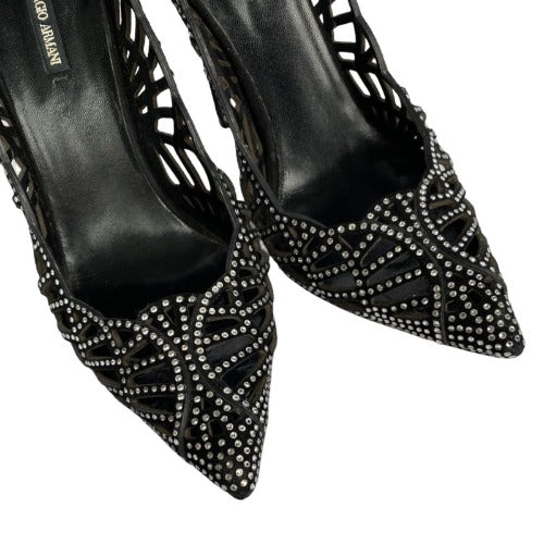 GIORGIO ARMANI Crystal Embellished Black Suede Pointed Toe Laser Cut Pumps, Size 36