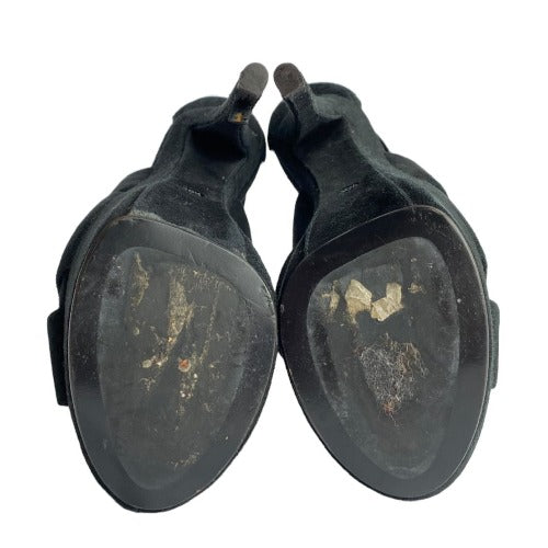 GIUSEPPE ZANOTTI Black Suede Strappy Ultra High Platform Heel Sandals, Size 36.5