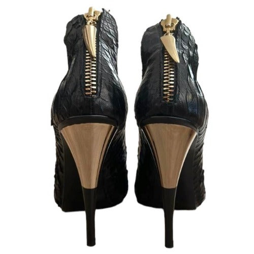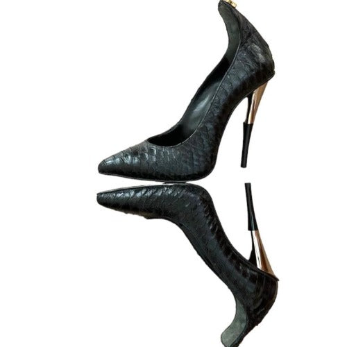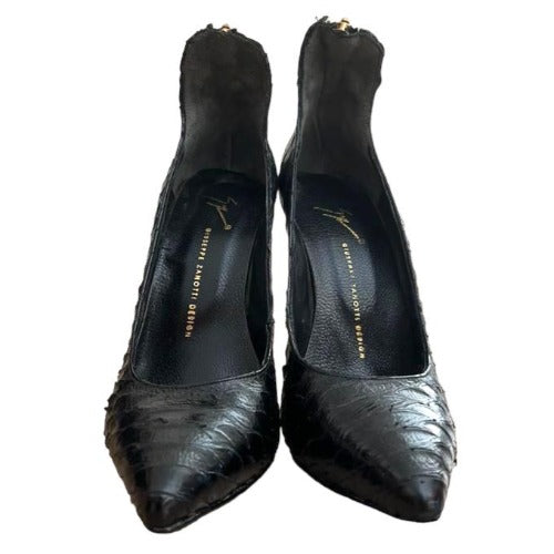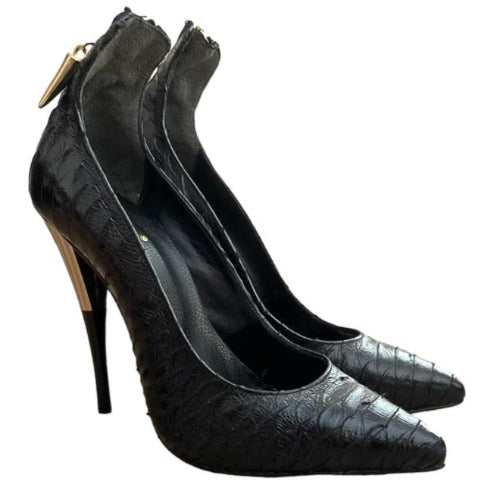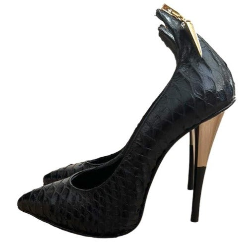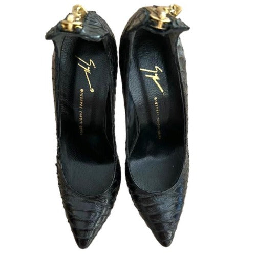 NEW GIUSEPPE ZANOTTI Cruise Black Python Gold Zip & Heel Pointed Toe Pumps, Size 39