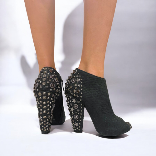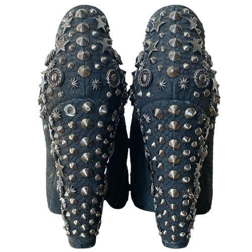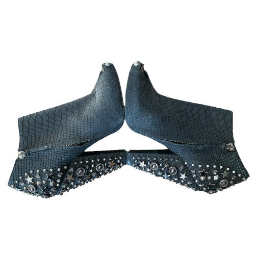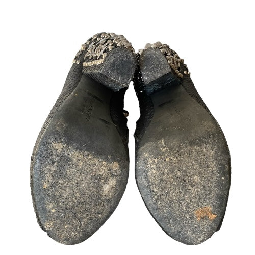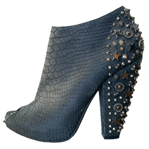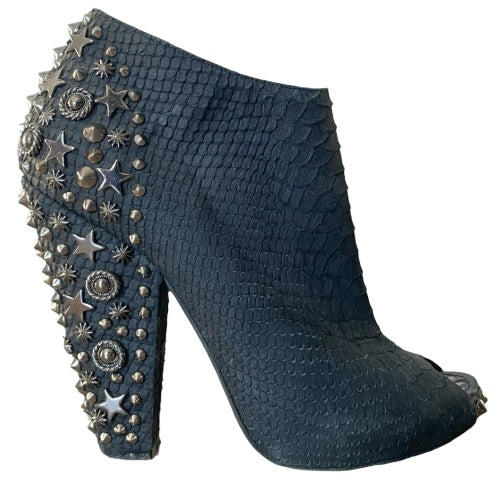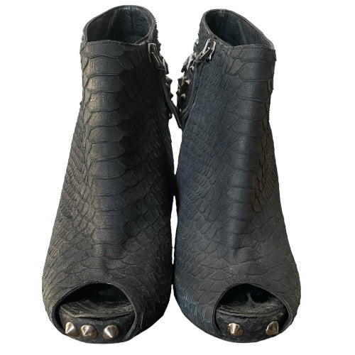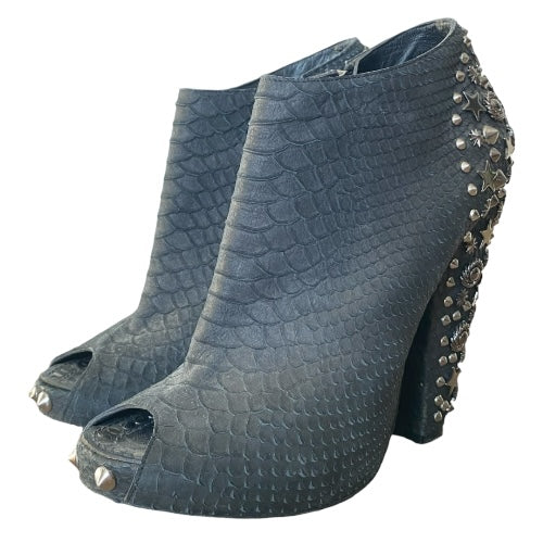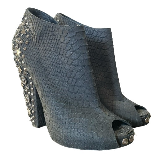 GIVENCHY Black Python Leather Studded Peep Toe Ankle Booties, Size 38