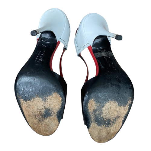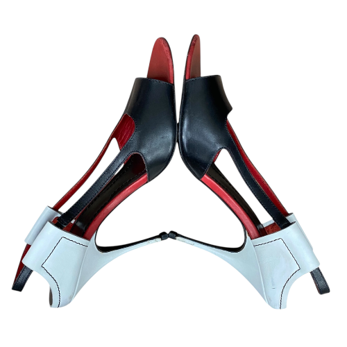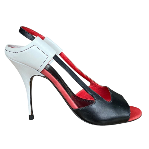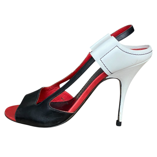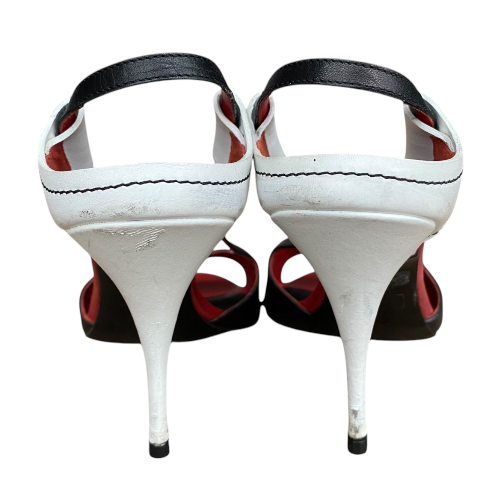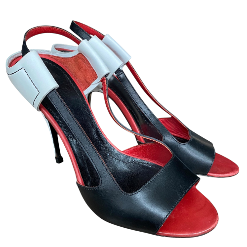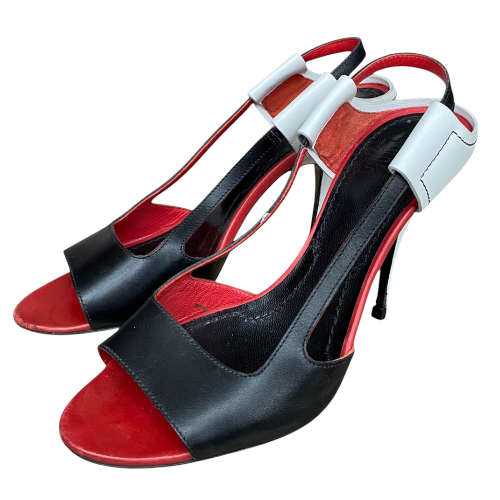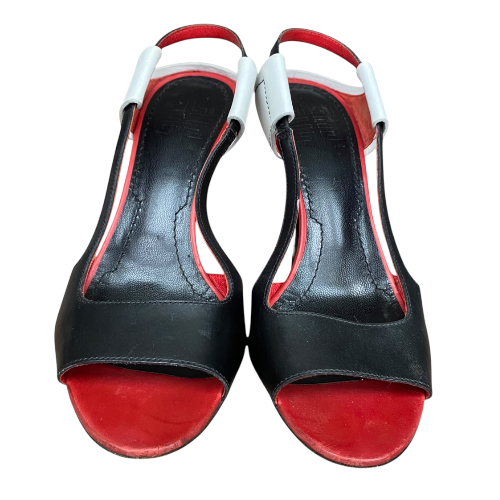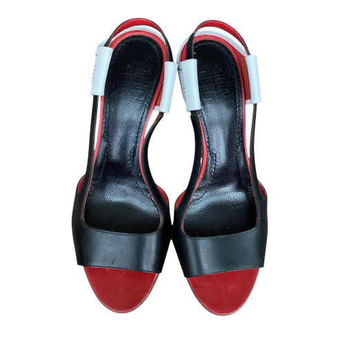 GIVENCHY Black, White, Red Colorblock Leather Open Toe Heeled Sandals, Size 36