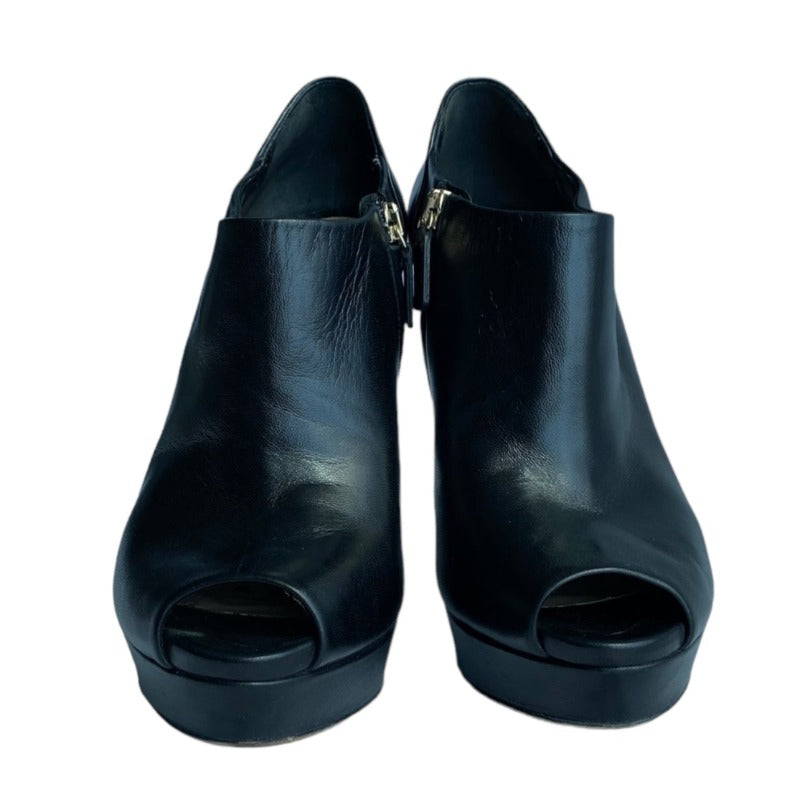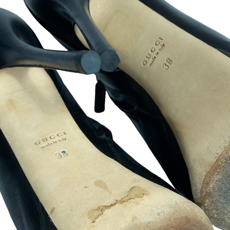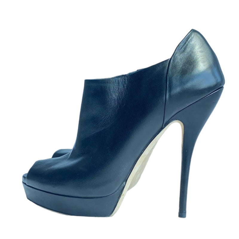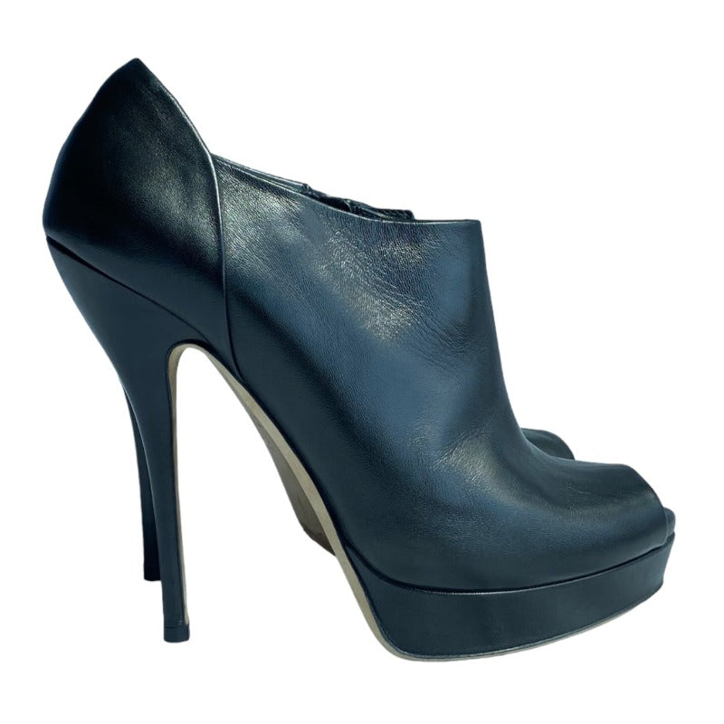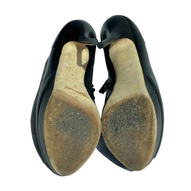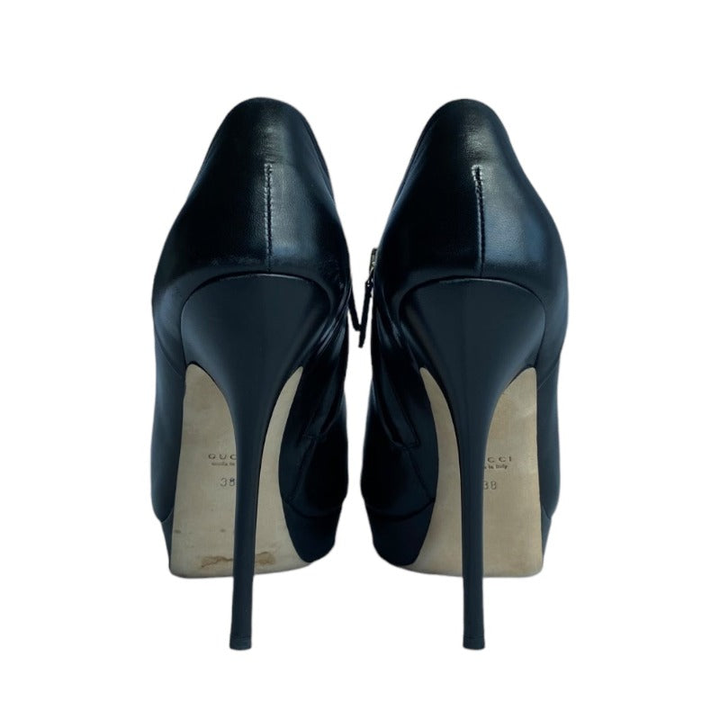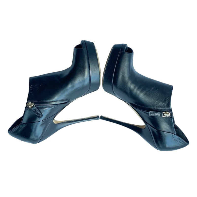 GUCCI Black Leather Peep-Toe Stiletto Heels Platform Ankle Booties, Size 38