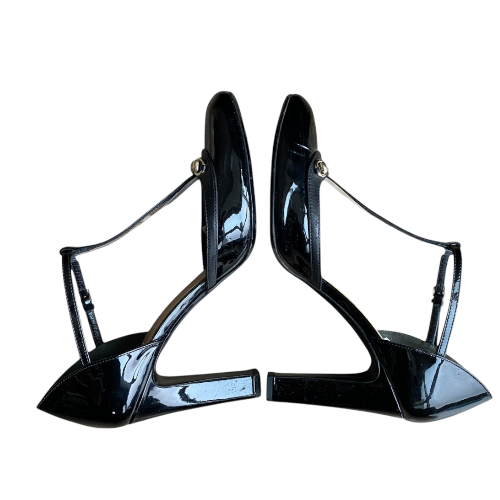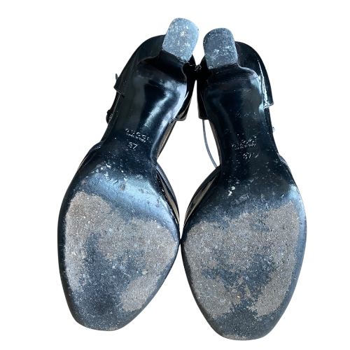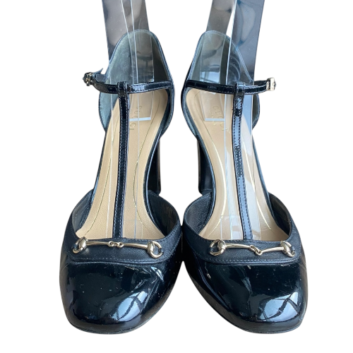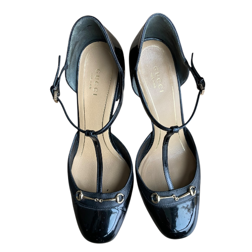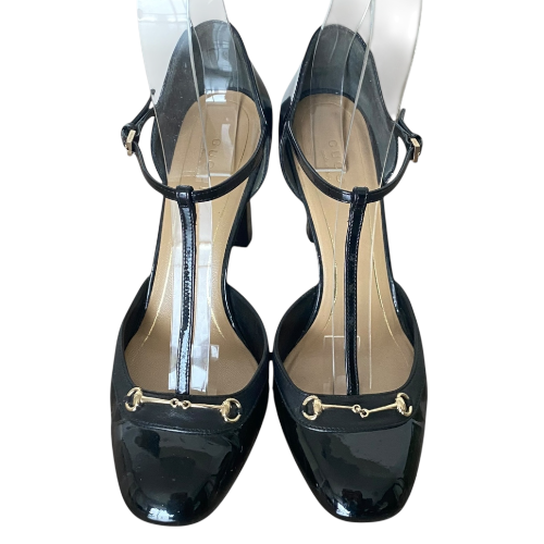 GUCCI Black Patent Leather Horsebit Leather Trim Mary Jane Pumps, Size 37
