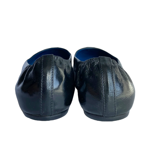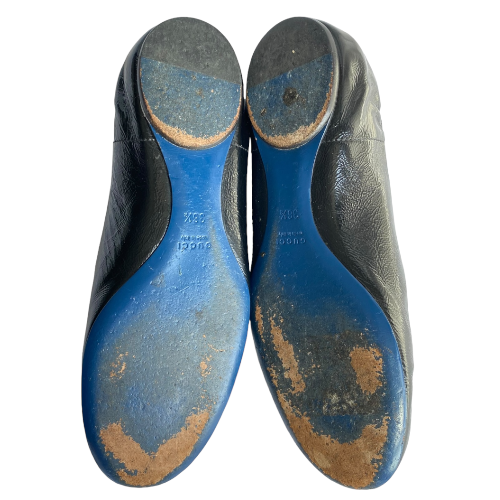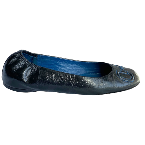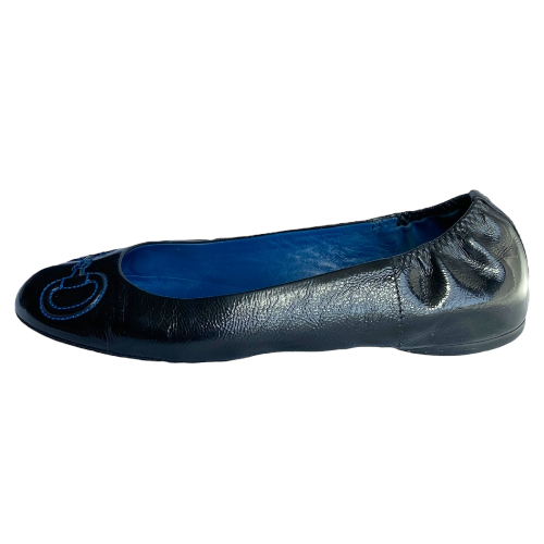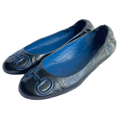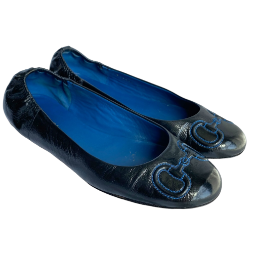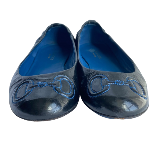 GUCCI Black Patent Leather Navy Horsebit Embroidered Ballet Flats, Size 36.5