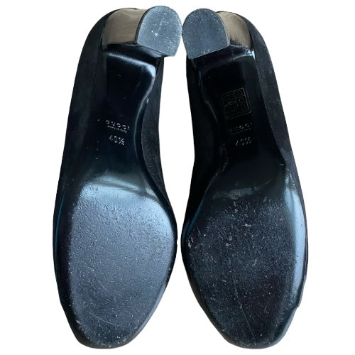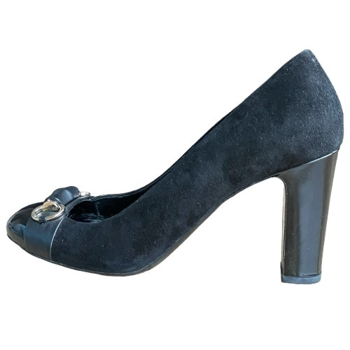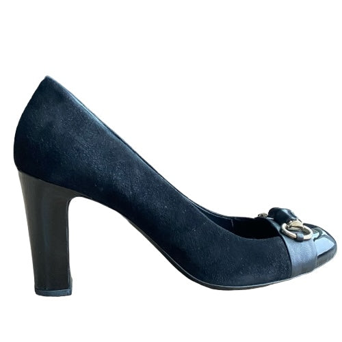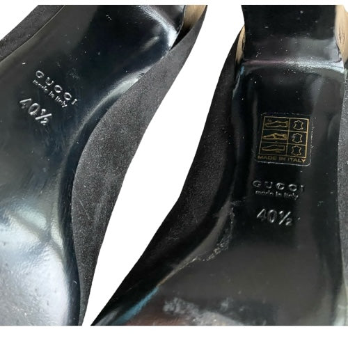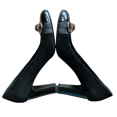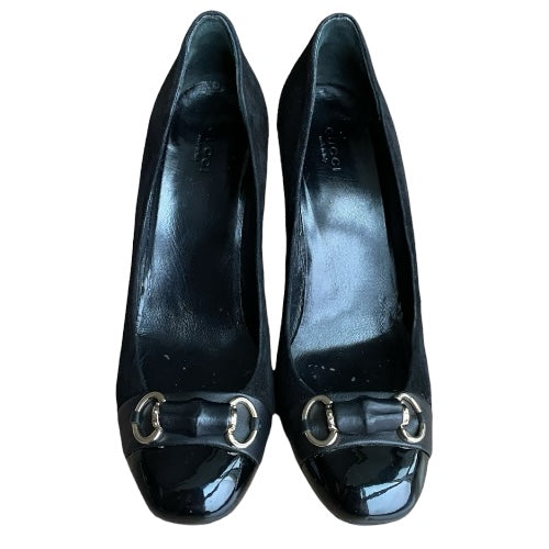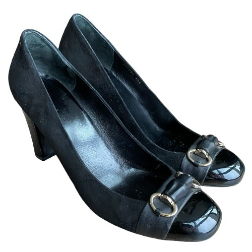 GUCCI Black Suede Horsebit Patent Leather Cap Toe & Heeled Pumps, Size 40.5