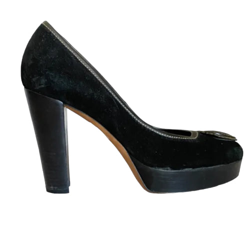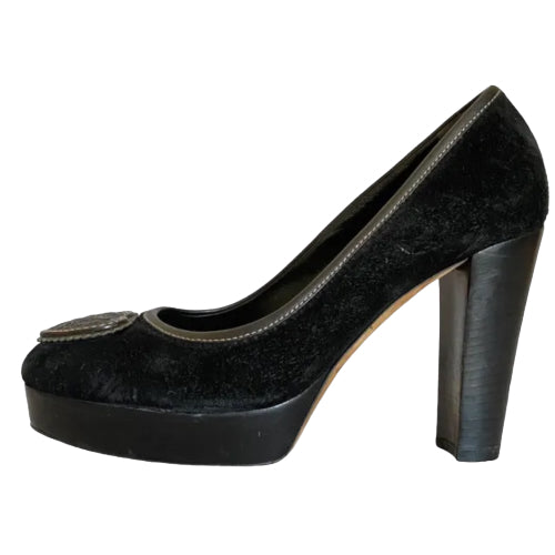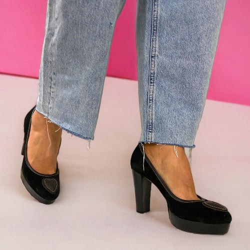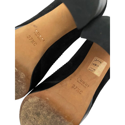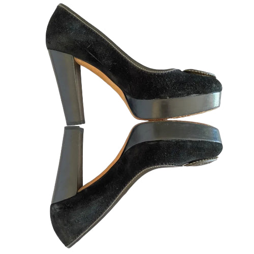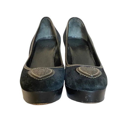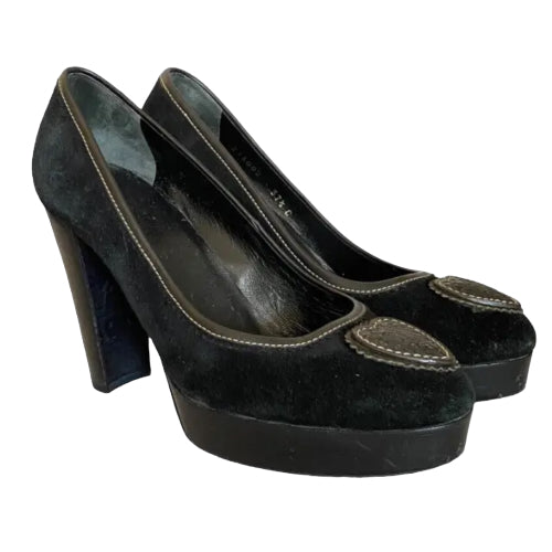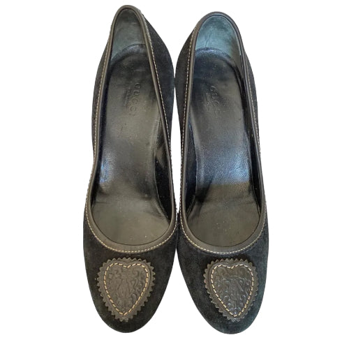 GUCCI Black Suede, Leather Heart Platform Pumps, Size 37.5