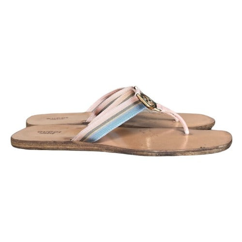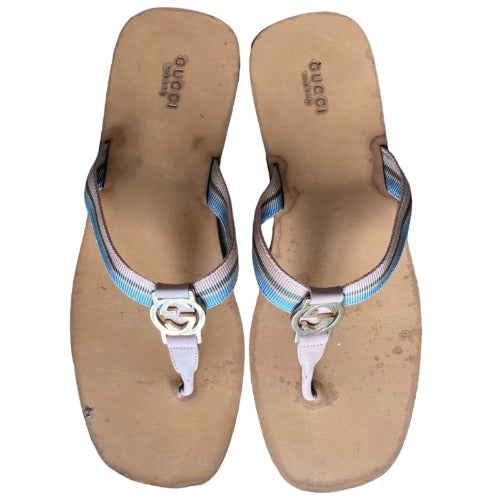 GUCCI Enamel GG Web Flip Flops Pink Blue Flat Thong Sandals, Size 40