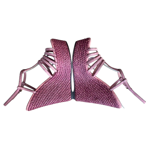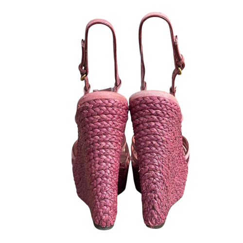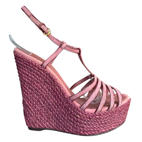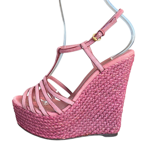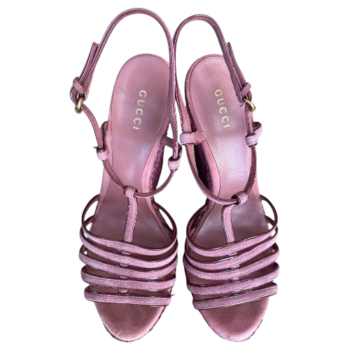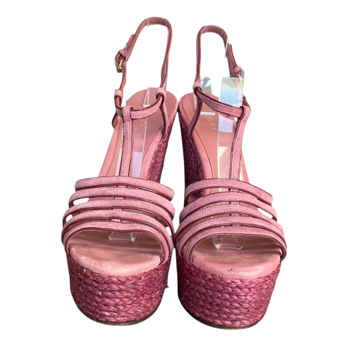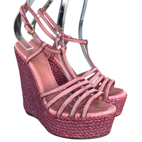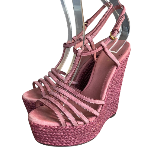 GUCCI Pink Suede Strappy Espadrille Wedge Sandals, Size 38