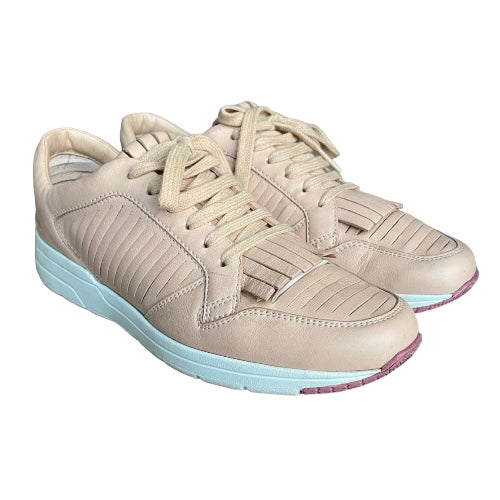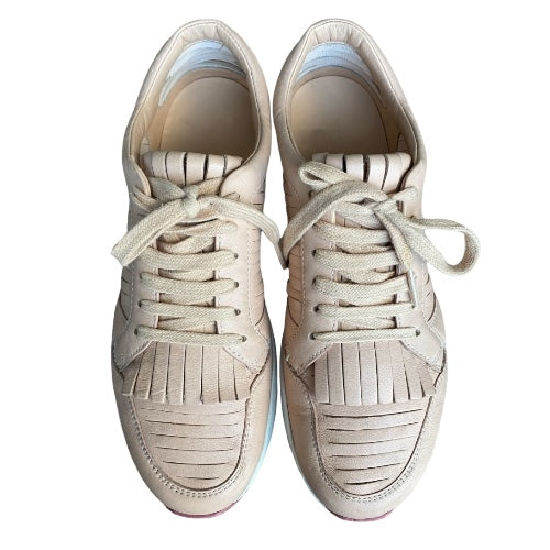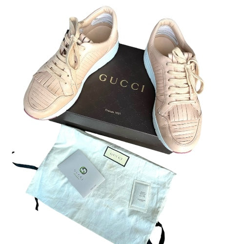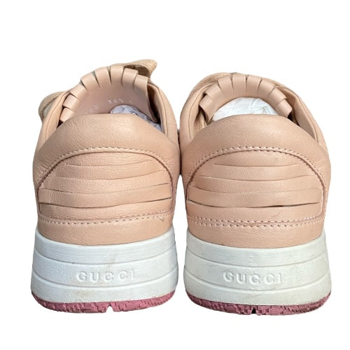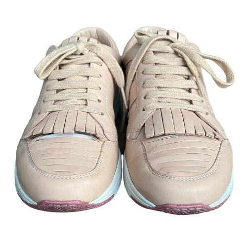 GUCCI Poudre Pink Trim Leather Fringe Lace Up Low Sneakers, Size 36.5