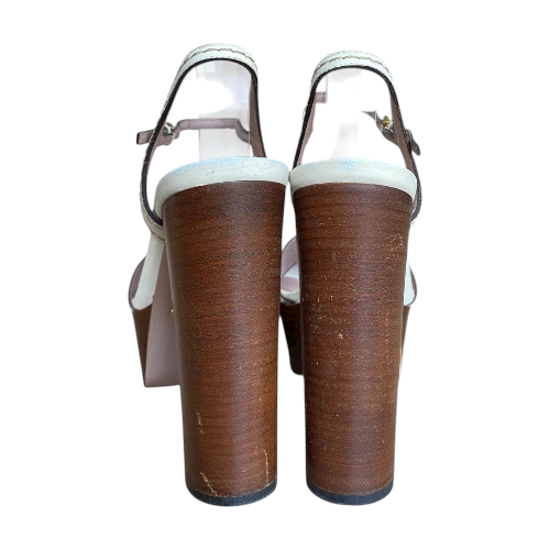 GUCCI White Leather Lifford Horsebit Ankle Strap Block Heel Sandals, Size 36