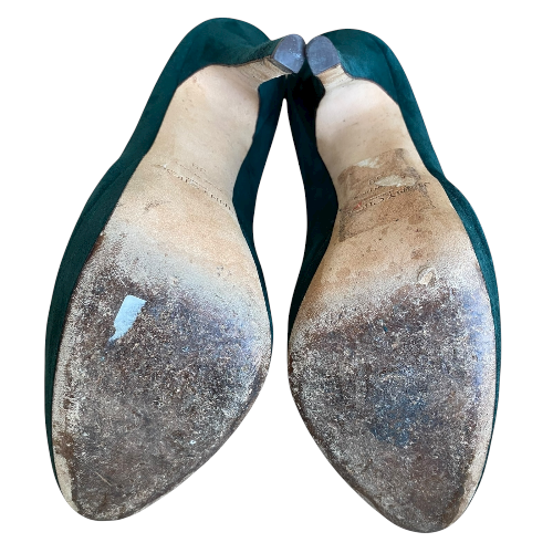 JIMMY CHOO Dark Green Suede Platform Pumps, Size 39