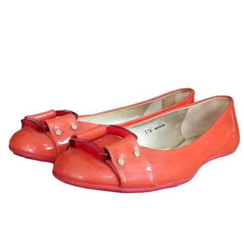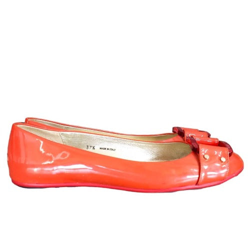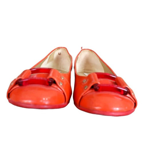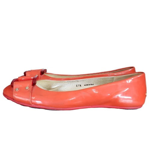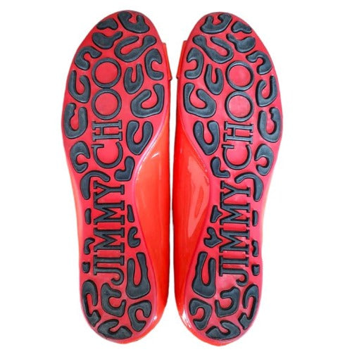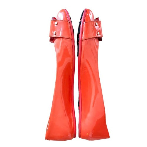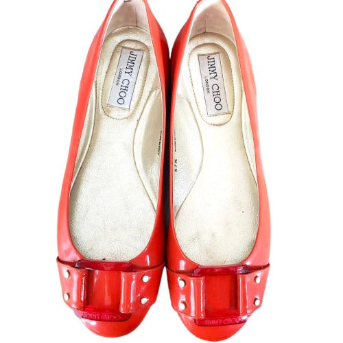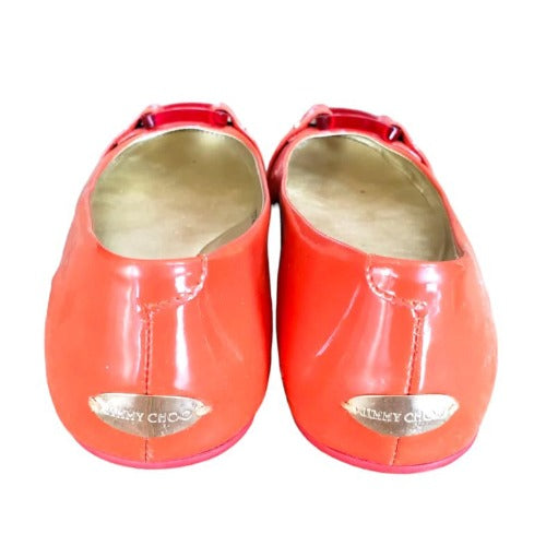 JIMMY CHOO Morse Orange Patent Leather Square Buckle Ballet Flats, Size 37.5